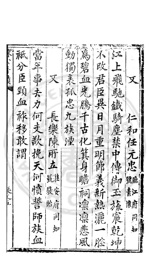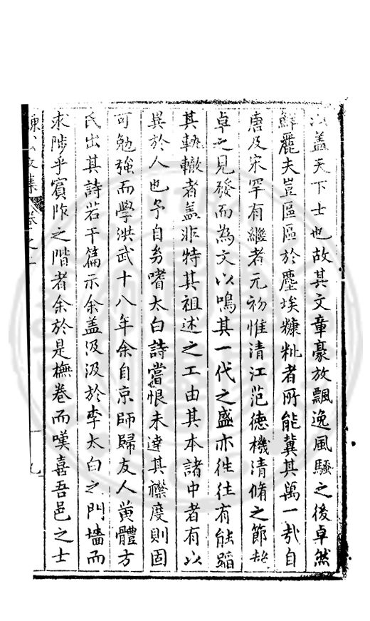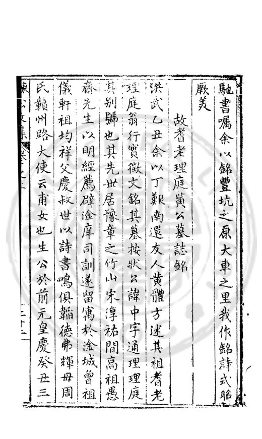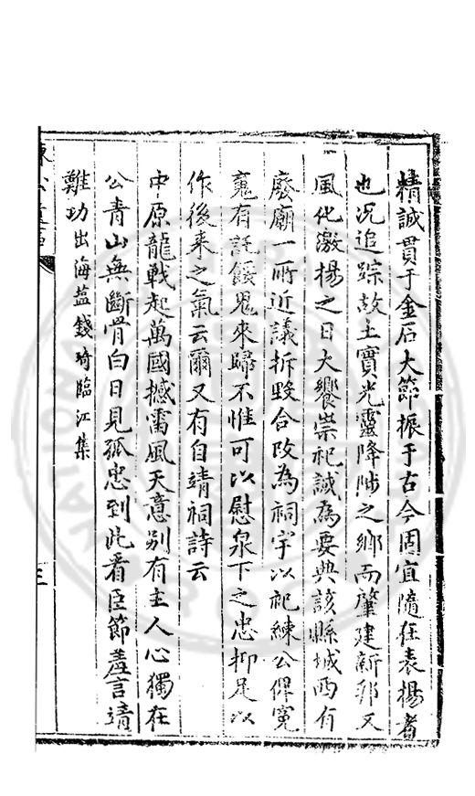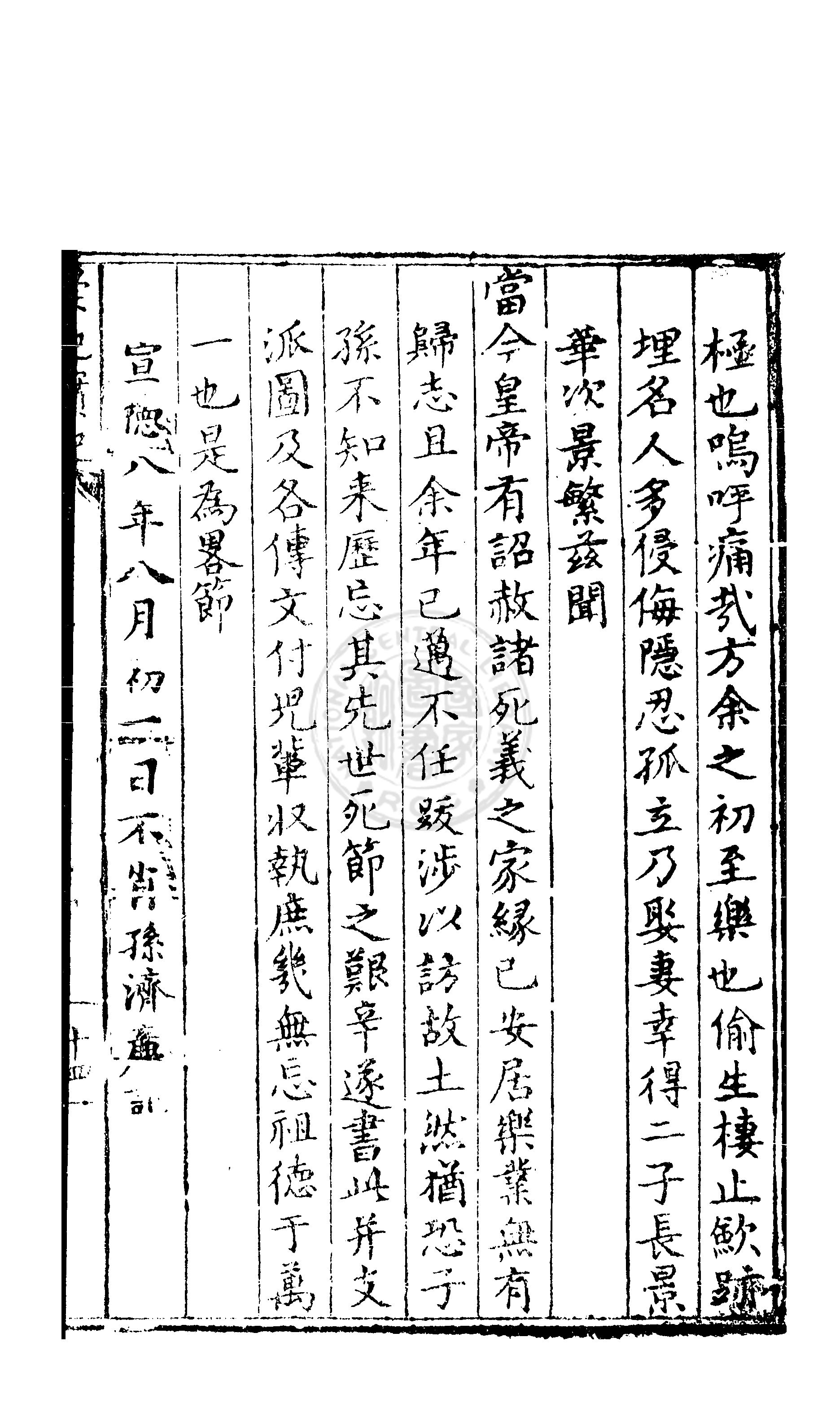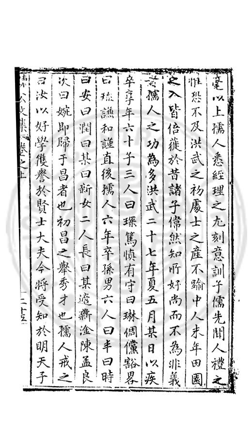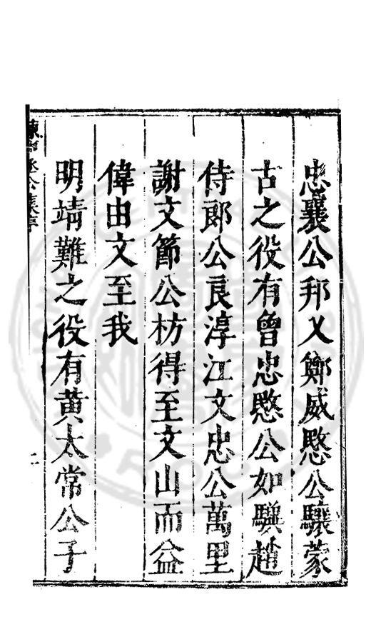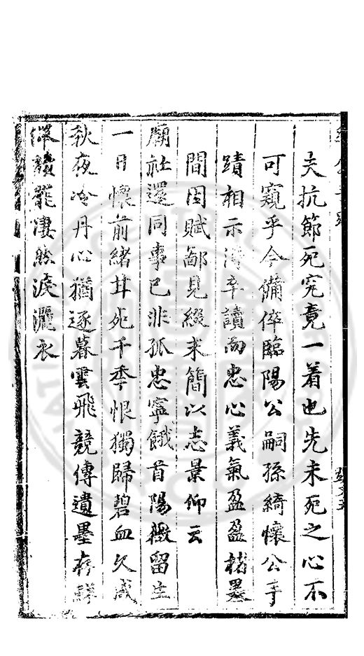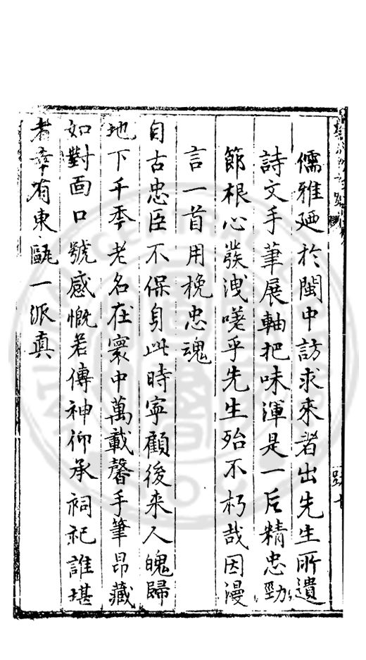 漿識者知其必以忠顯所以靖難之變先生惟知有君不知有身知有國不知有家知有死不知有生其為氣也至大至□□乎天地之間余獨景仰先生者前代忠節或異姓□興或亂逆煽禍若