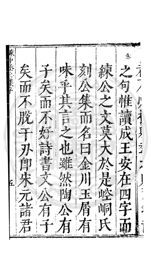 之句惟讀成王安在四字而練公之文莫大於是崆峒氏刻公集而名曰金川玉屑有味乎其言之也雖然陶公有子矣而不好詩書文公有子矣而不脫干刃即宋元諸君