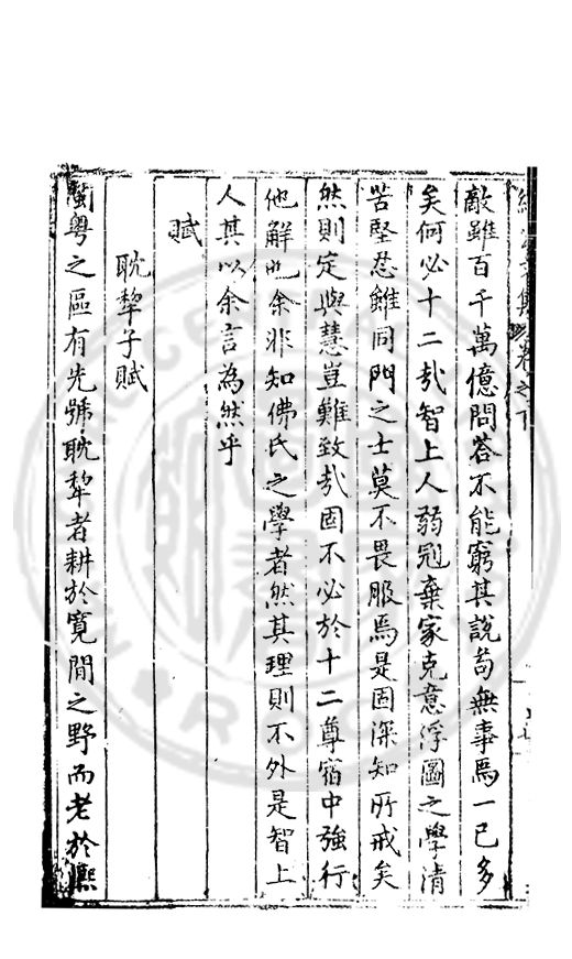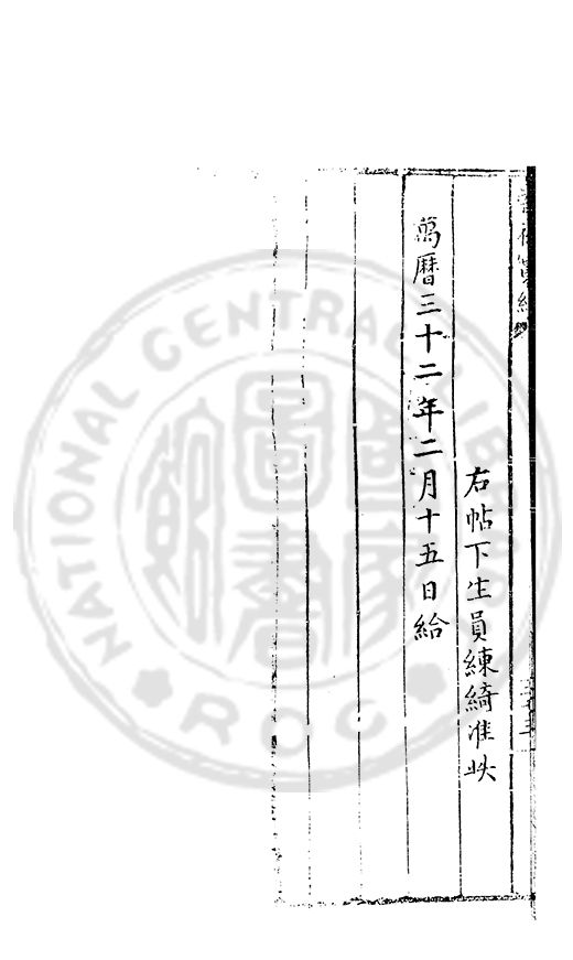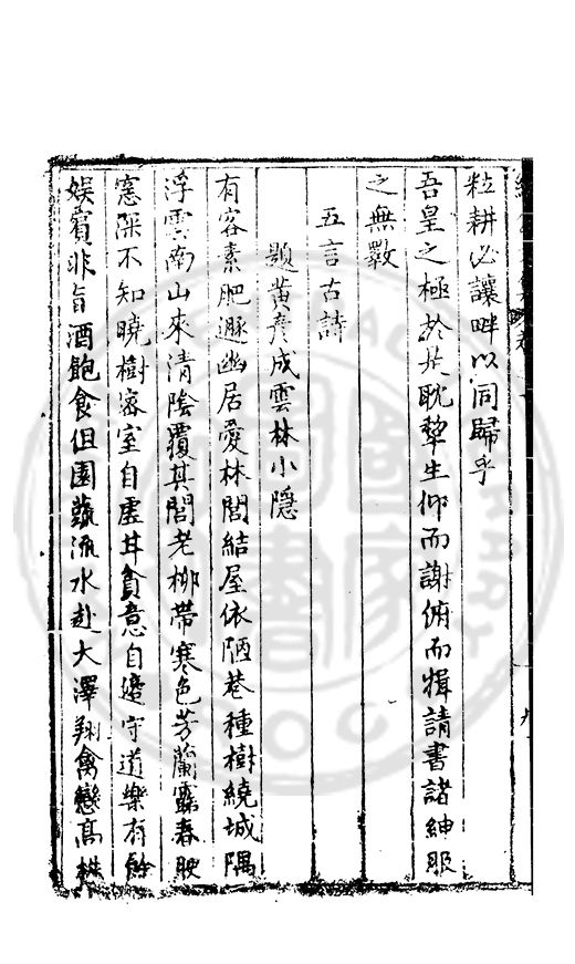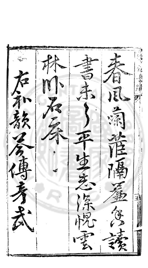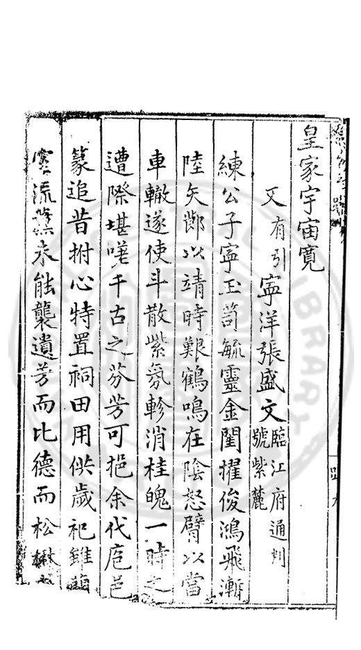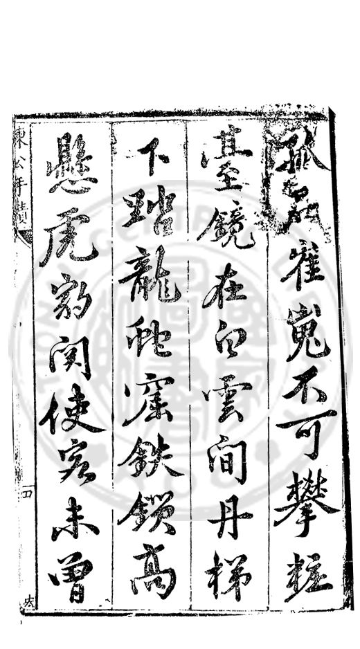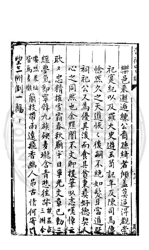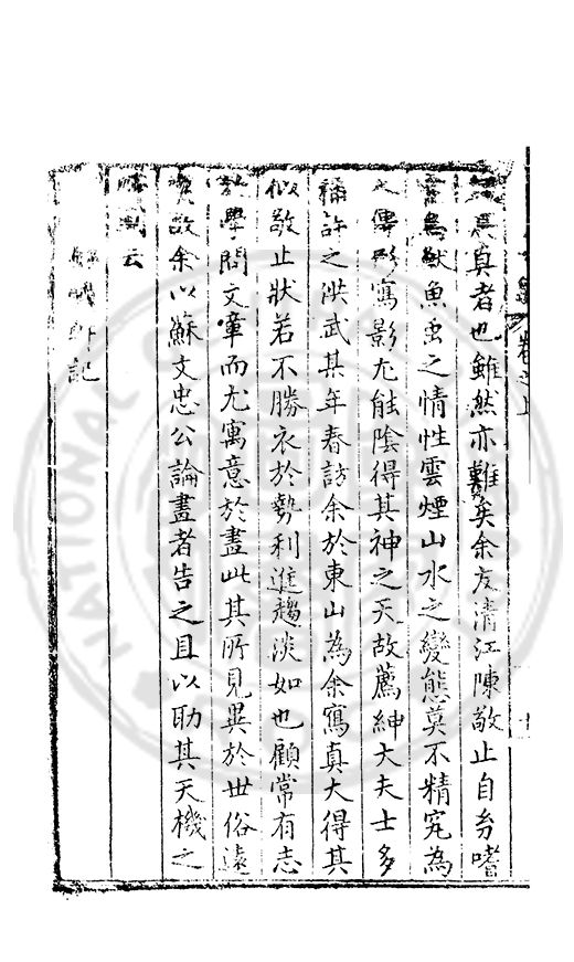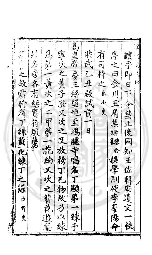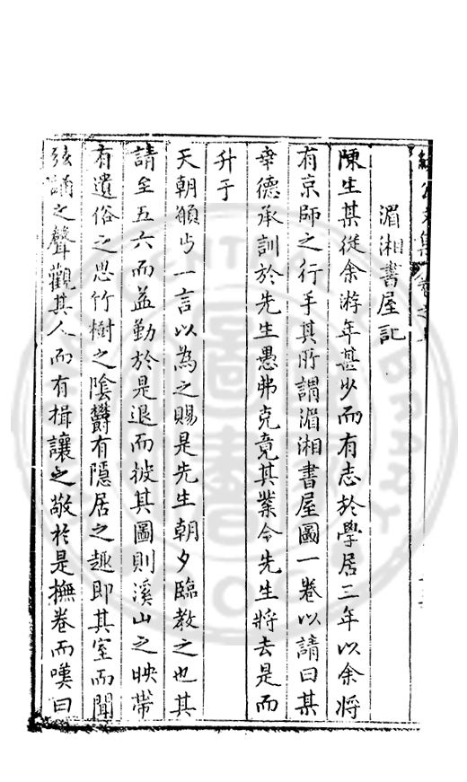 於鹿門孔明之於南陽皆是物也閩人鄭琳讀書播耨執勤耒耜而不求聞達自號躭犂生吾友吏部侍郎練子寧為賦以宣道其意音韻鏗鏘而甚得體國子助教鄭孟宣氏懇余數語其後予嘉其陶然樂於畎畝之中非決性命之情以饕富貴者比特為書焉建文二年夏四月十八日臨汀張顯宗跋 萬奎言嘗記徐侍講元玉云聞之錢侍郎習禮錢吉水大族本亦練子寧踈遠姻親一時雖脫禍而恆為鄉人所持舉族不敢一吐氣習禮既