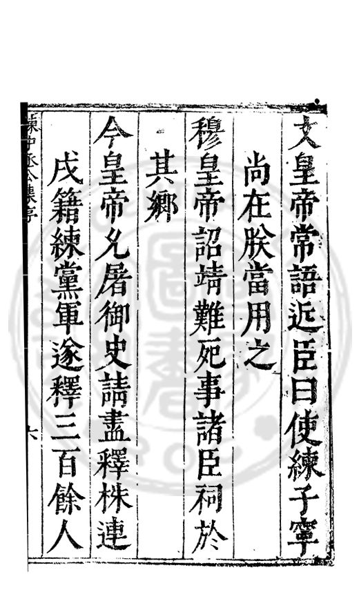 今皇帝久屠御史請盡釋株連戌籍練黨軍遂釋三百餘人