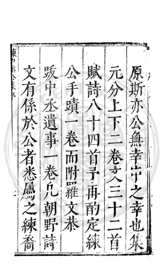 原斯亦公無幸中之幸也集元分上下二卷文三十二首賦詩八十四首予在酌定練公手蹟一卷凡朝野詩文有係於公者悉屬之練裔