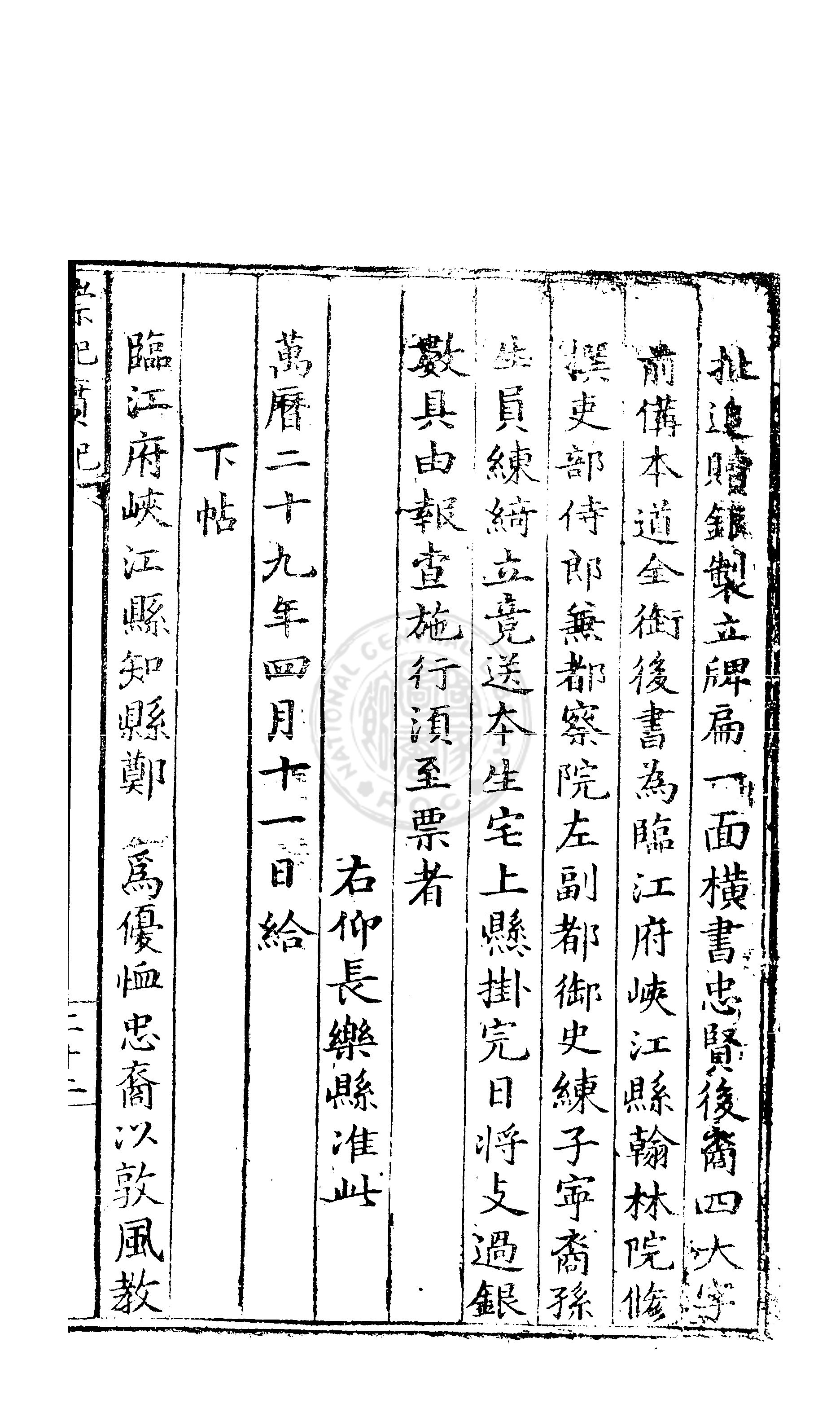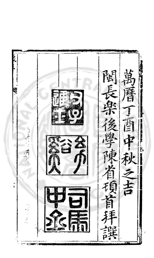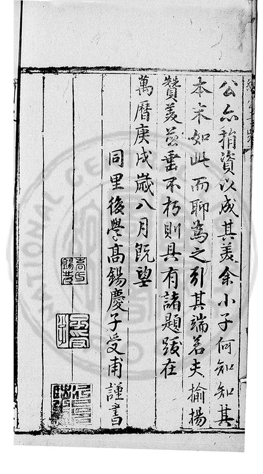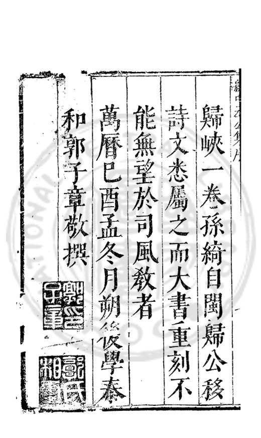 萬曆己酉孟冬月朔後學泰和郭子章敬撰