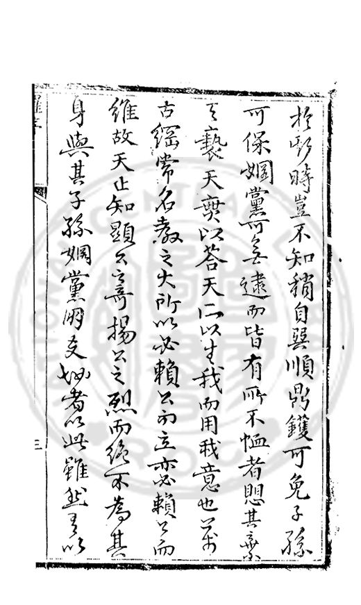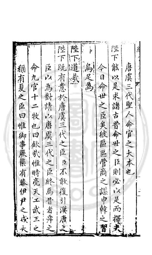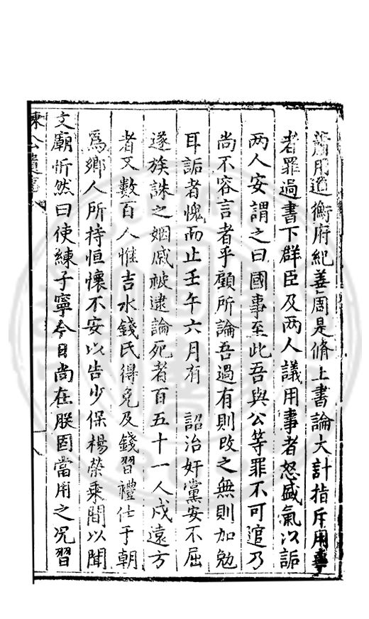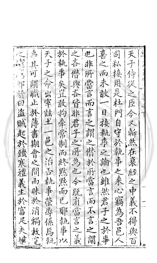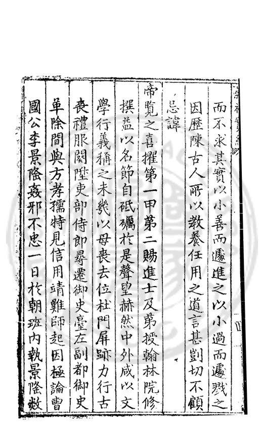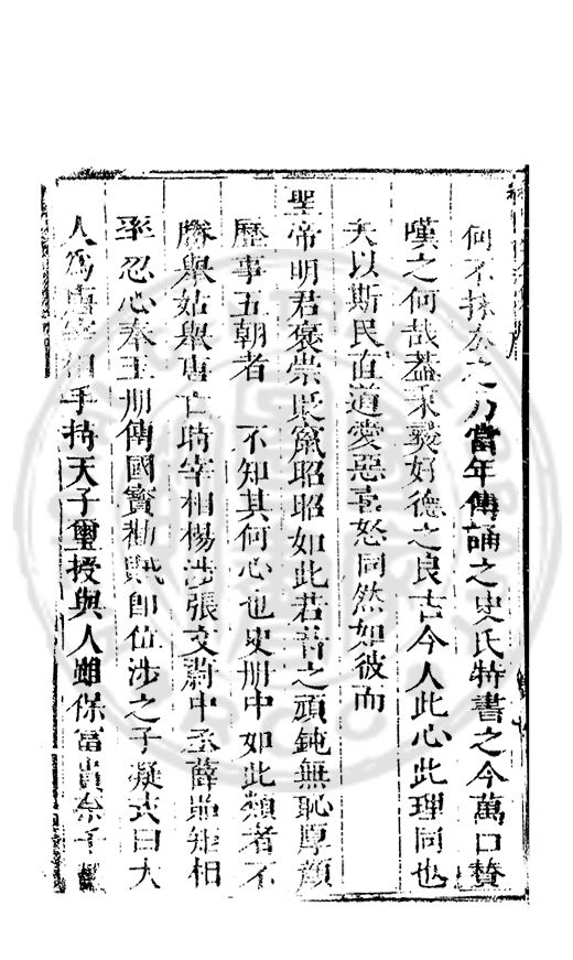 聖帝明君褒崇貶竄昭昭如此若昔之頑鈍無恥厚顏歷事五朝者不知其何心也史冊中如此類者不勝舉姑舉唐亡時宰相楊涉張文蔚中丞薛□矩相率忍心奉王冊傳國寶□賦即位涉之子凝式曰大人為□宰相手持天子璽授與人雖保富貴奈千□