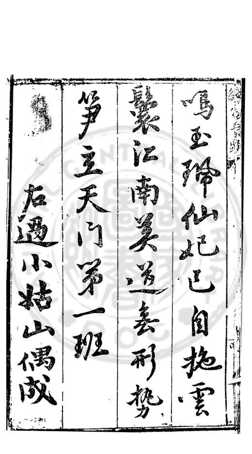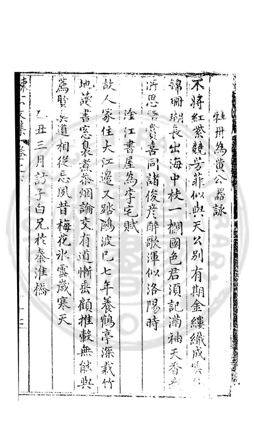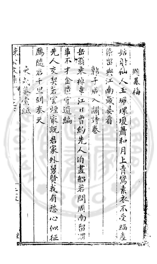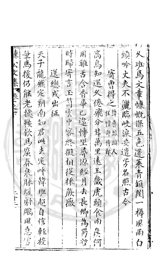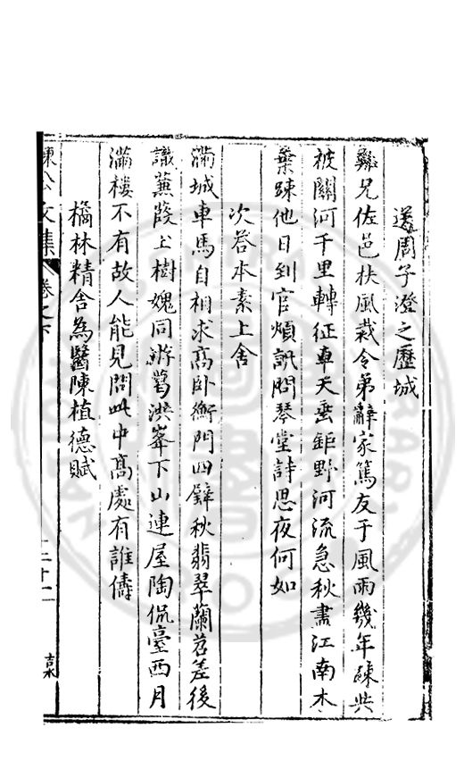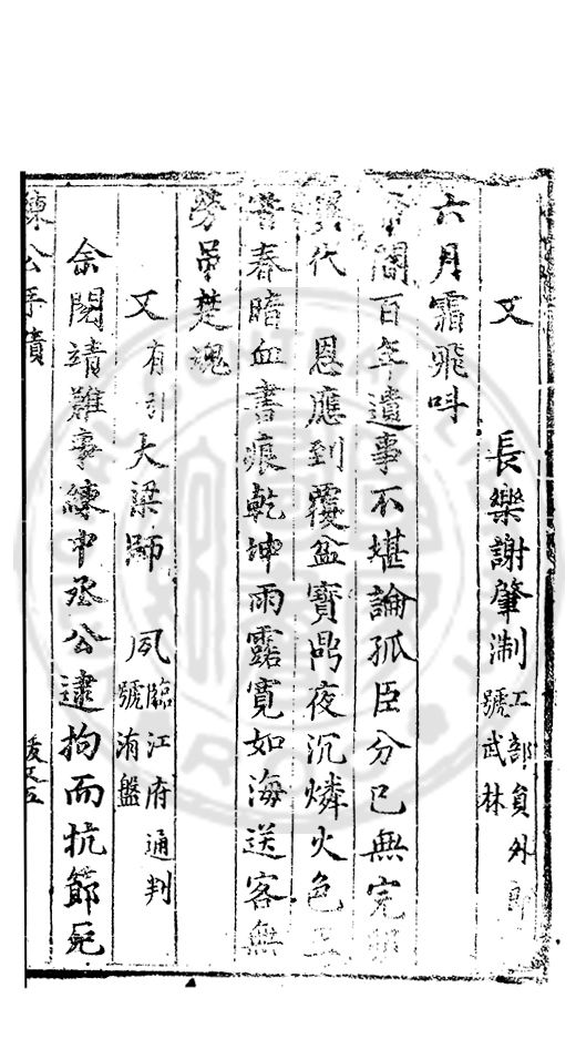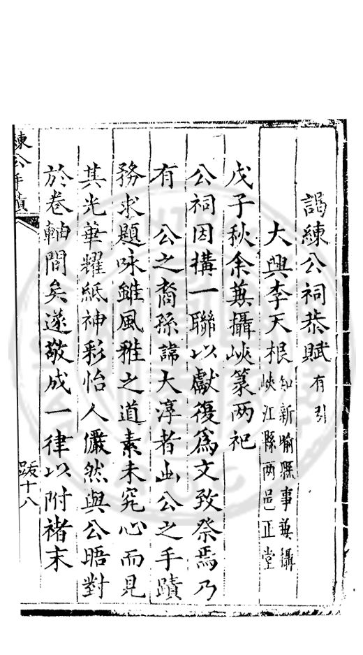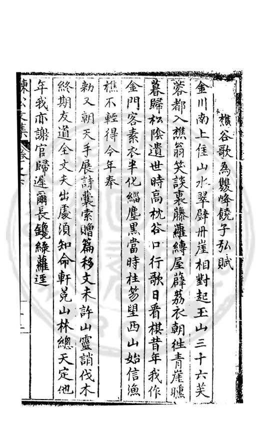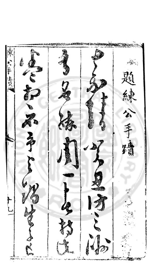 文山先浚爭烈文山燕樓□市之□與其策詩文並傳□□盈□至今照耀人耳目理因□然練公科名不讓文山其平生看述當□不減于文山乃金所為集□□百數十篇則其初束于厲禁之故即片□無散數看者後百餘年臨二守