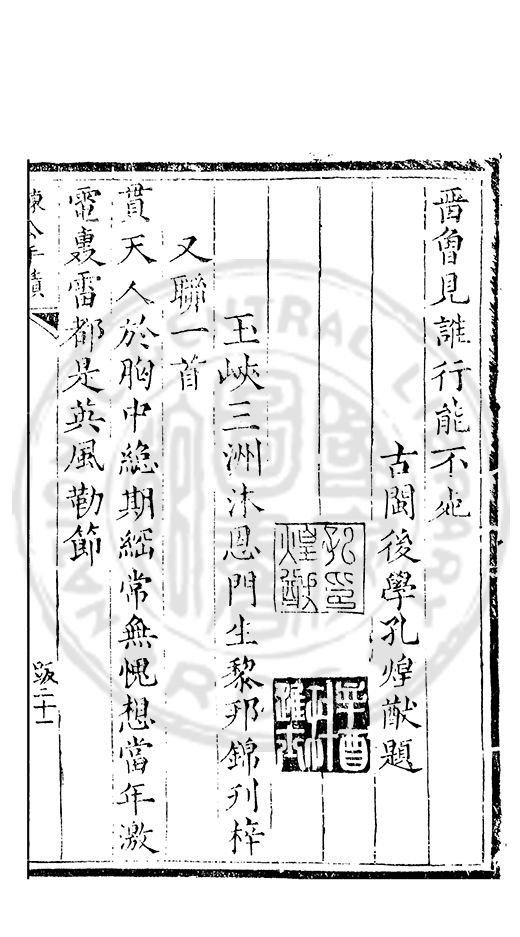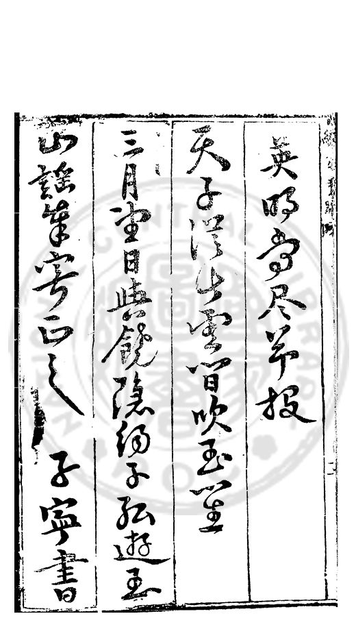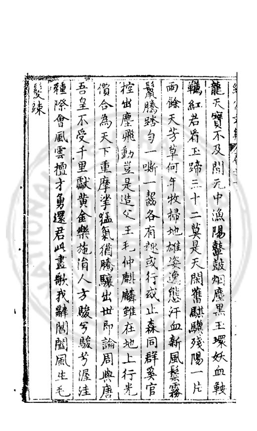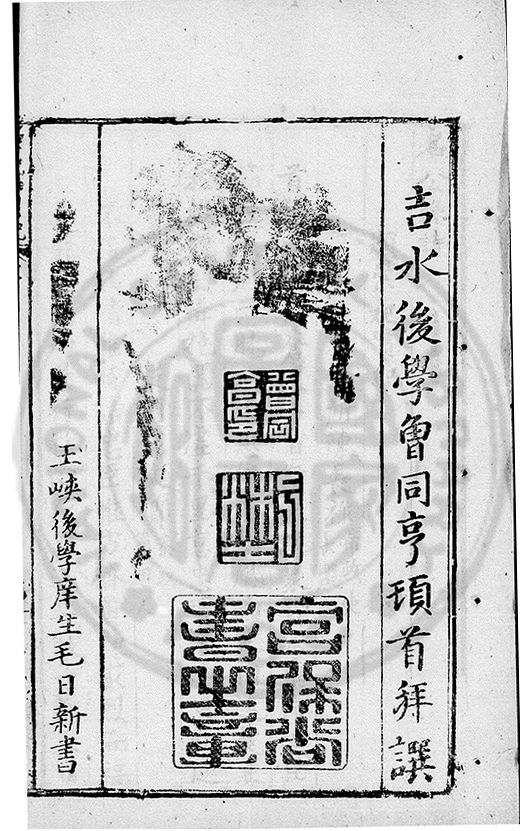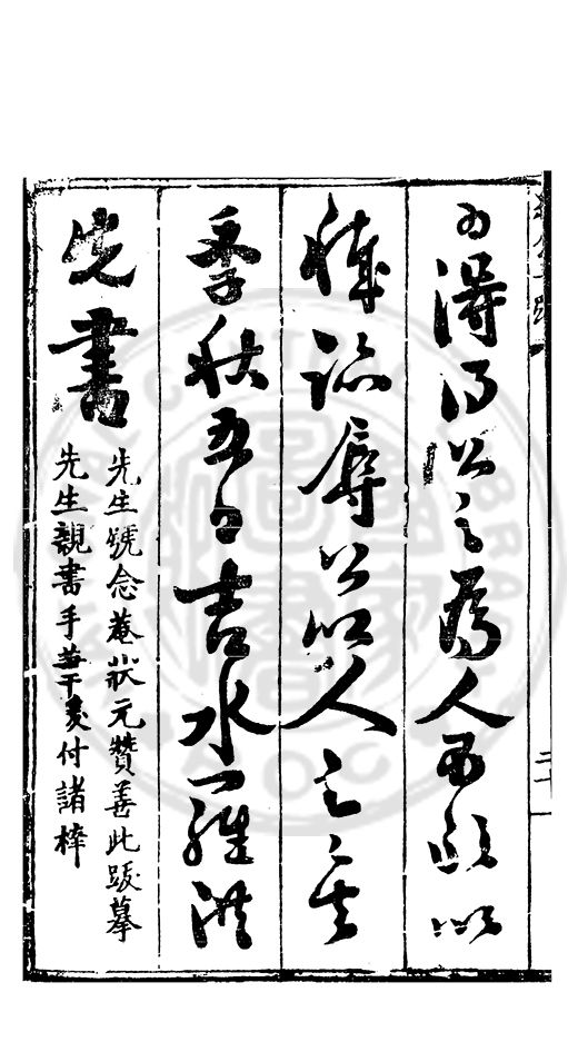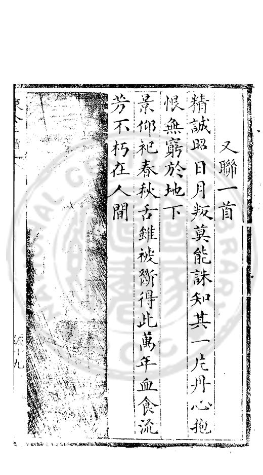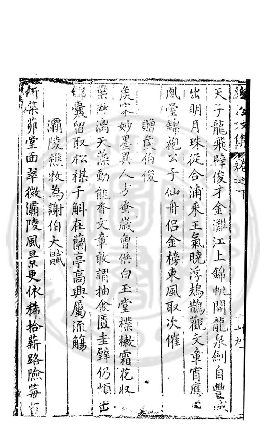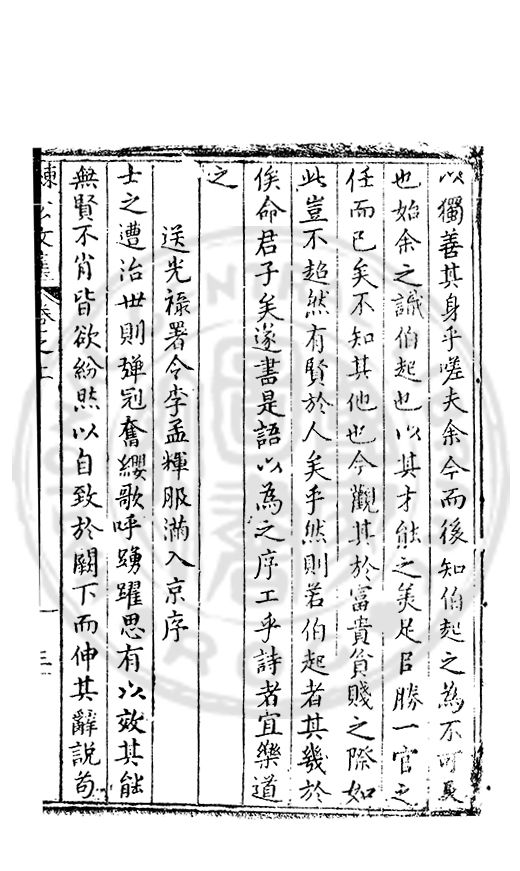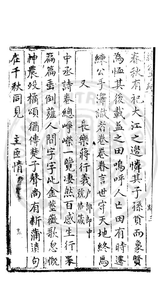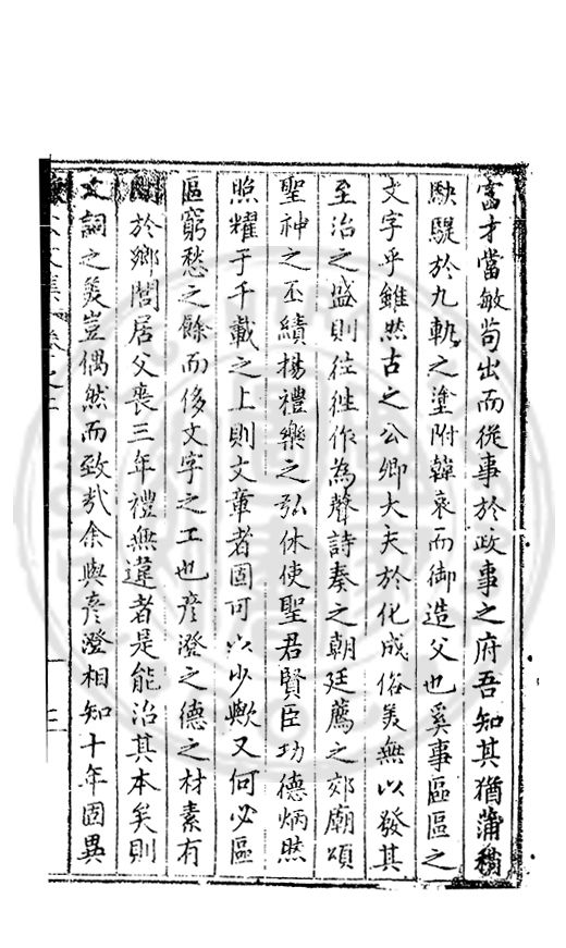 王公佐多方蒐羅乃始間出然□掇拾水火之餘不過存什一於于百故今僅僅若是益所遘之會異也然寶劍之光不為豐獄閟易牙之旨可以一鬻嘗正人君子之文正如麟文鳳彩豈光數數然見然而未見也孰護之而存既見也孰
