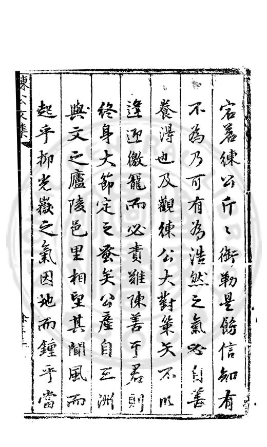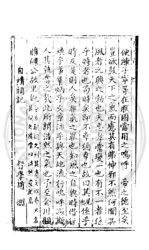 宕若練公斤斤御□□信知有不為乃可有為浩然之氣必自善養得也及觀練公大對策矢不□逢迎徼寵而必責難陳善于君則終身大節定之□矣公產自三洲與文之盧陵邑里相望其聞風而起乎抑光嶽之氣因地而鍾乎當