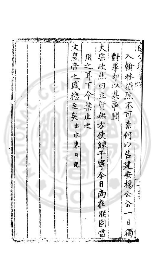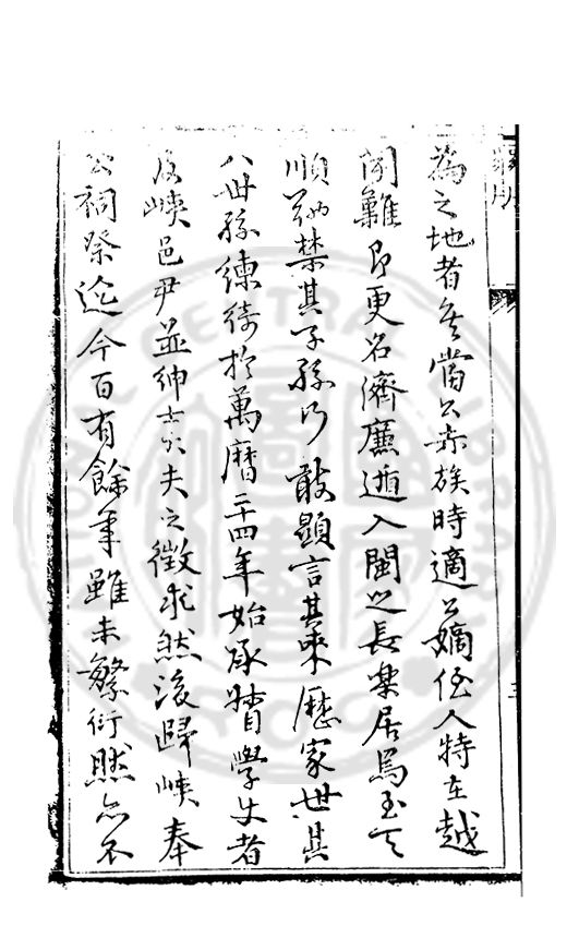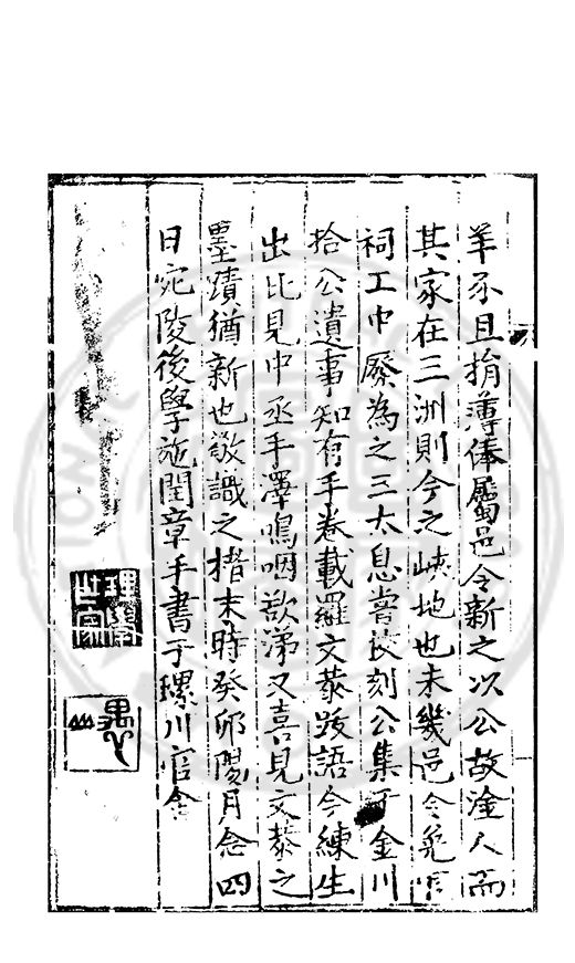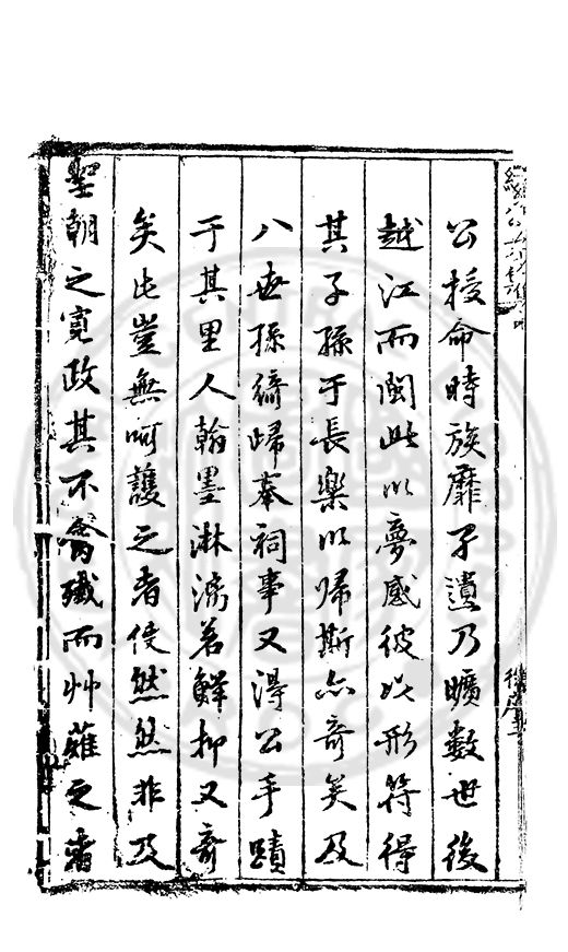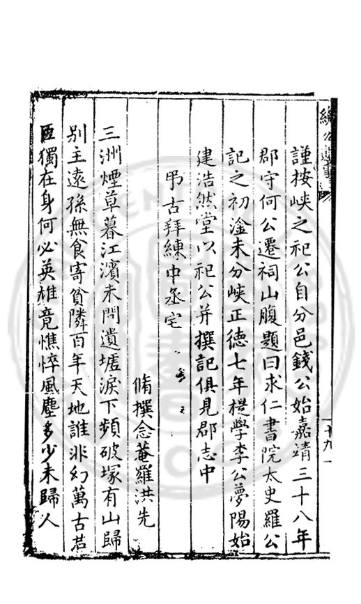 成祖皇帝語近臣□□□子寧今日在朕固當用之夫既諒死者之心又什生者之繫大聖人之度萬世不數見也仰承德意表宅里以風勵鄉郡豈無賢有司先得我心之所同然者哉即故墅以祠且以収其族籍荒田以祀因以食其貧此其勢甚便而其義固甚正也三洲去敞廬止二舍許至今乃知其詳則余之□惰罪亦何辭見羅公全集今錄其晷