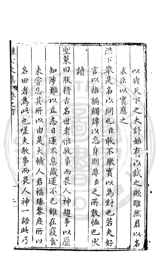 成祖之功□民水火於上然後不負於君必有革除之□□任綱常於下然後不負於臣則諸臣之有補於世道質之