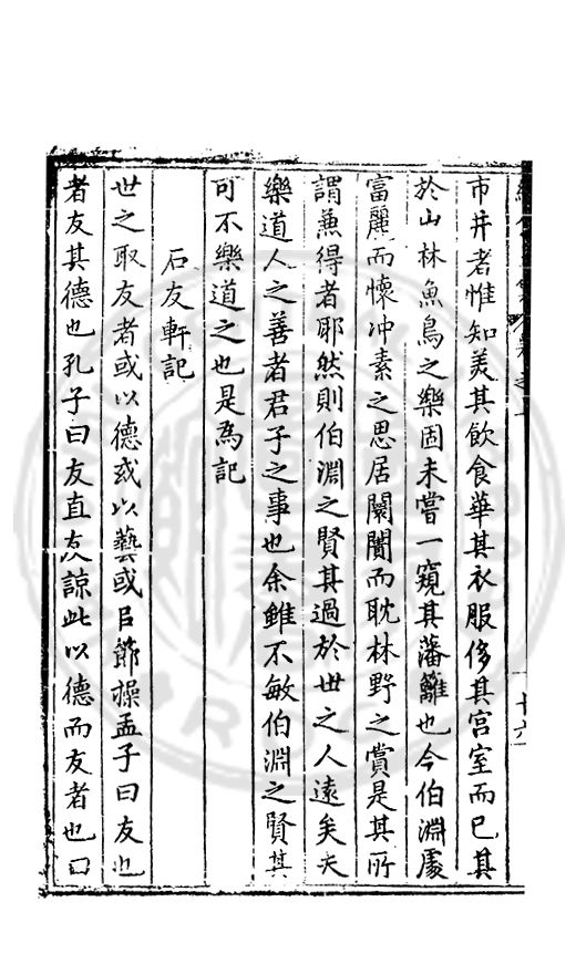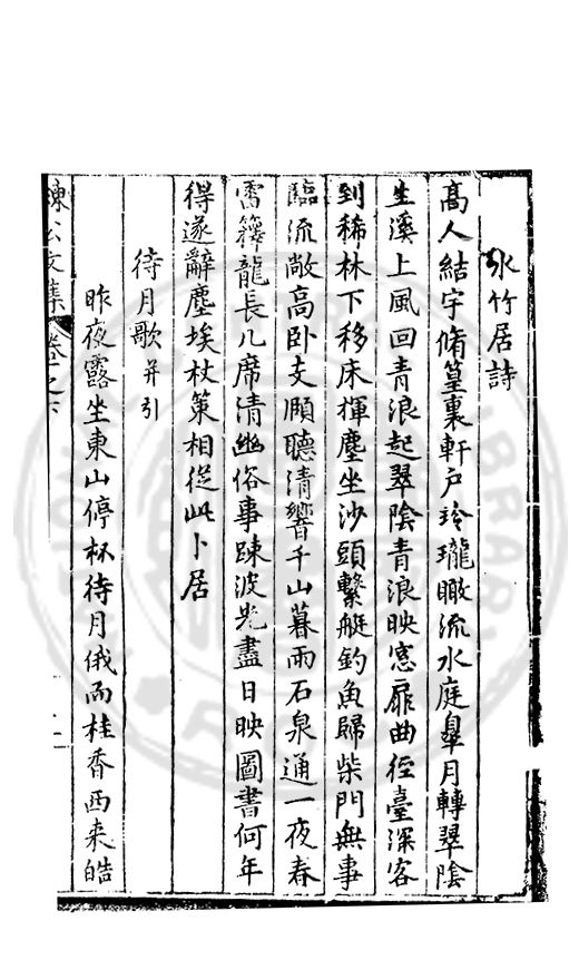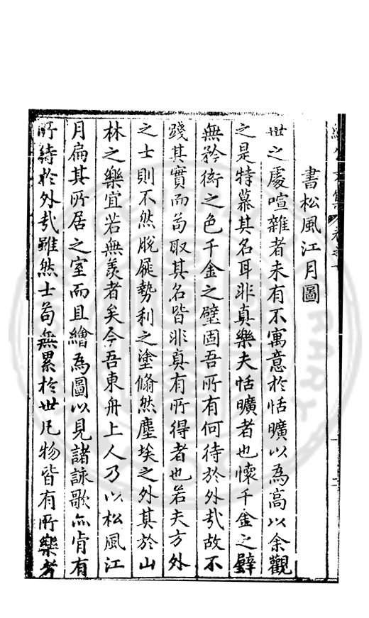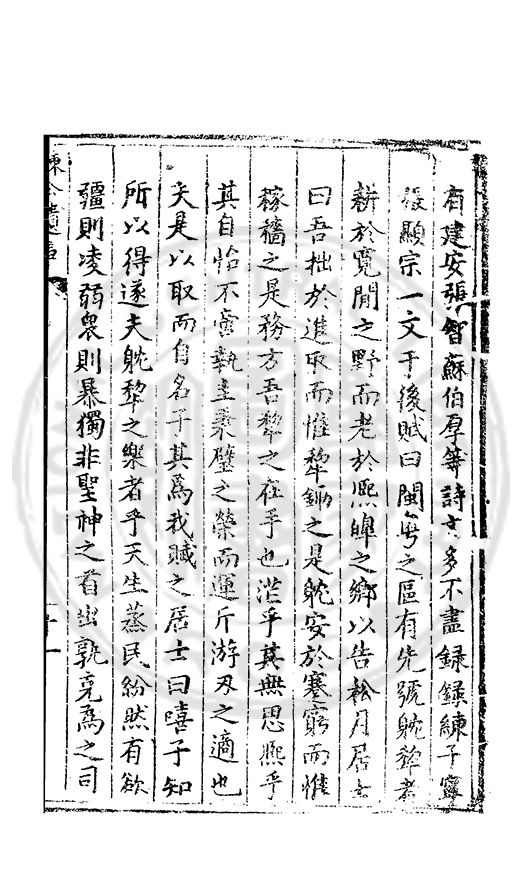 有建安張智蘇伯厚等詩文多不盡錄錄練子寧張顯宗二文於後賦曰閩粵之區有先號躭犁者耕於寬閒之野而老於熙皥之鄉以告松月居士曰吾拙於進取而惟犁鋤之是躭安於蹇窮而惟稼穡之是務方吾犁之在手也茫乎其無思熙乎其自怡不啻執圭秉璧之榮而運斤遊刃之適也夫是以取而自名子其為我賦之居士曰嘻子知所以得遂夫躭犁之樂者乎天生蒸民紛然有欲強則凌弱衆則暴獨非聖神之首出孰克為之司