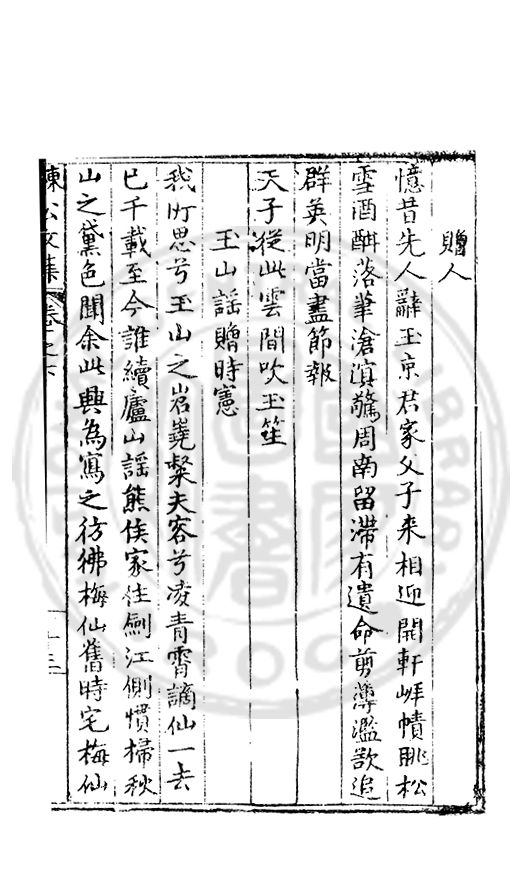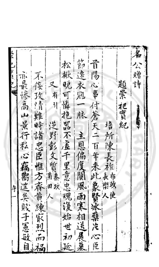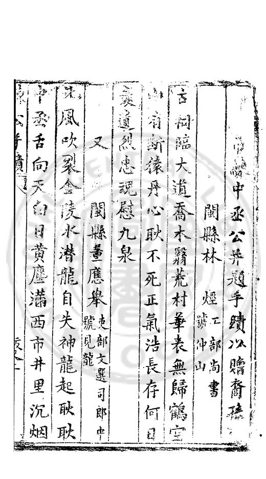 敖英贊曰於赫中丞直臣之嗣弘識遠覽凌厲千祀昔在序膠友金文靖自分忠臣天誘其性彤廷大對肝膽精神直在吾道遑恤批鱗載□木天文