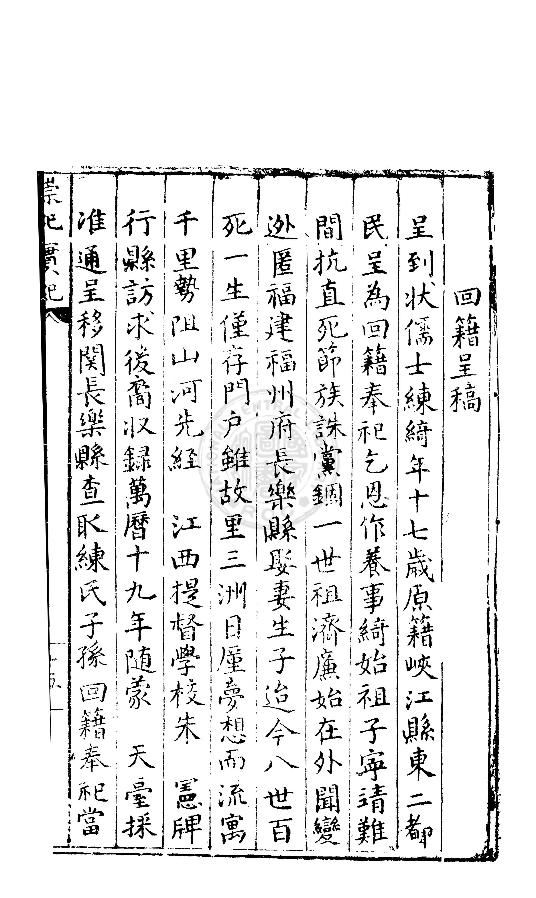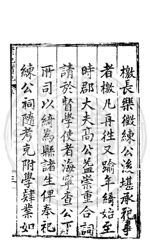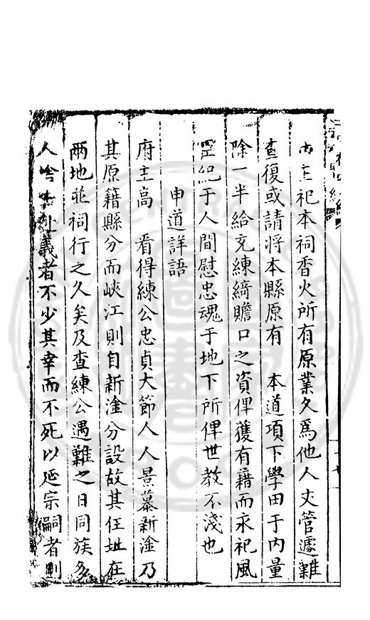 神宗皇帝御極有革除間被□誅臣忠於所事如練子寧者詔書到目地方有司官特為建祠之思昭百有□年乃得先生八代孫生員綺於閩之長樂江閩兩省曲□賢邑□之苦心移交始歸峽若淦若峽□建求仁浩然祠峽又特創祠於鳳凰山巔迄今春秋□