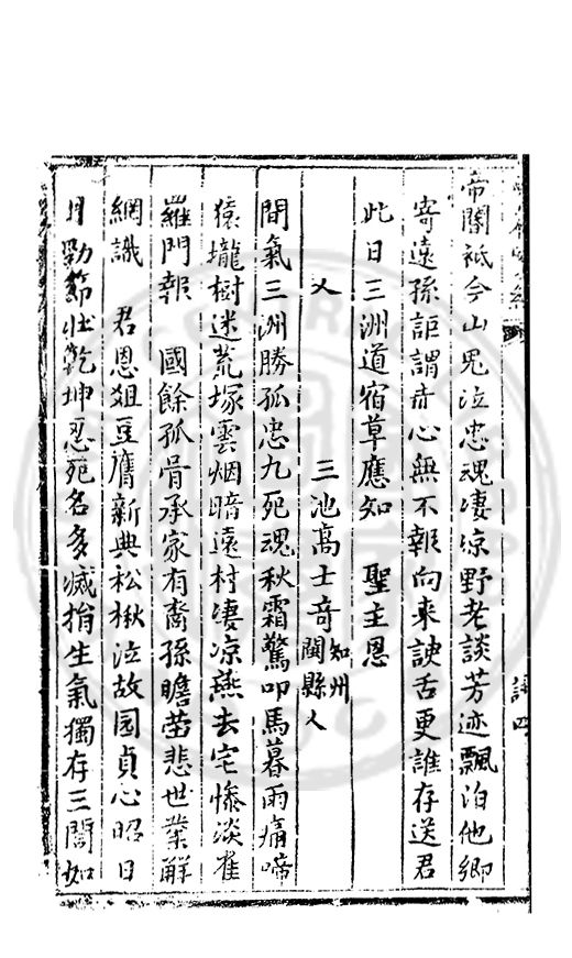 三洲煙草暮江濵未問遺墟淚下頻破塜有山歸別主逺孫無食寄貧鄰百年天地誰非幻萬古君臣獨在身莫道高名能隱禍風塵多少未歸人