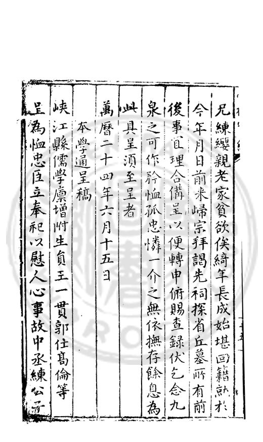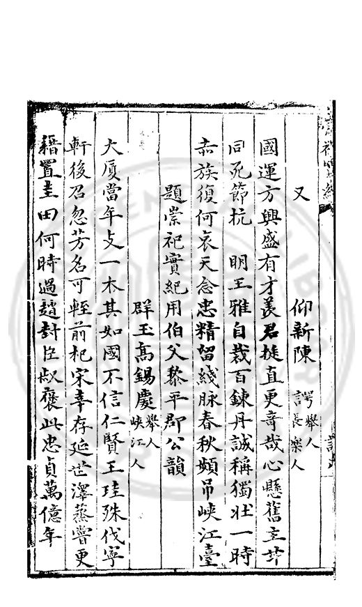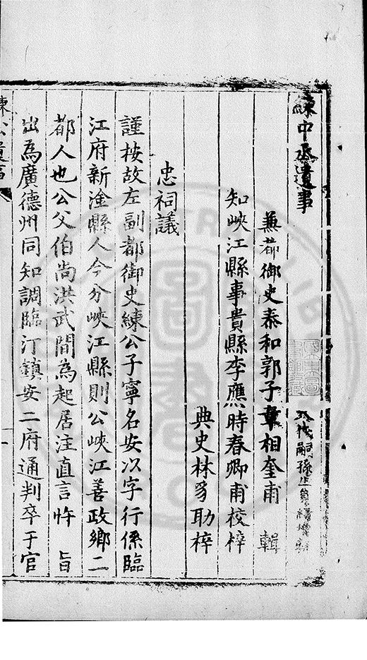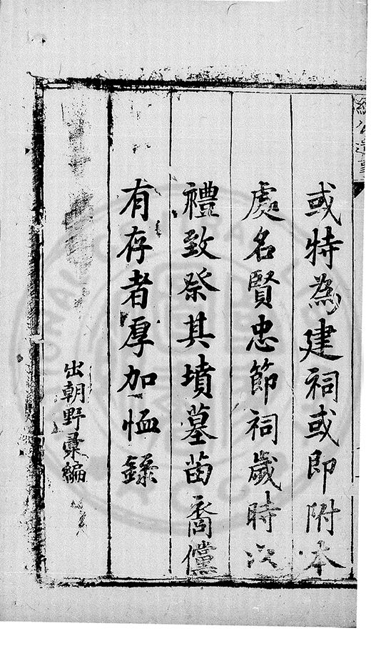 招之日四海臣氏無不踴躍思奮但褒表忠魂尚屬未盡盖忠臣既沐建祠交游至今遠戌苗裔已□恤録姻黨猶蔽覆盆恐