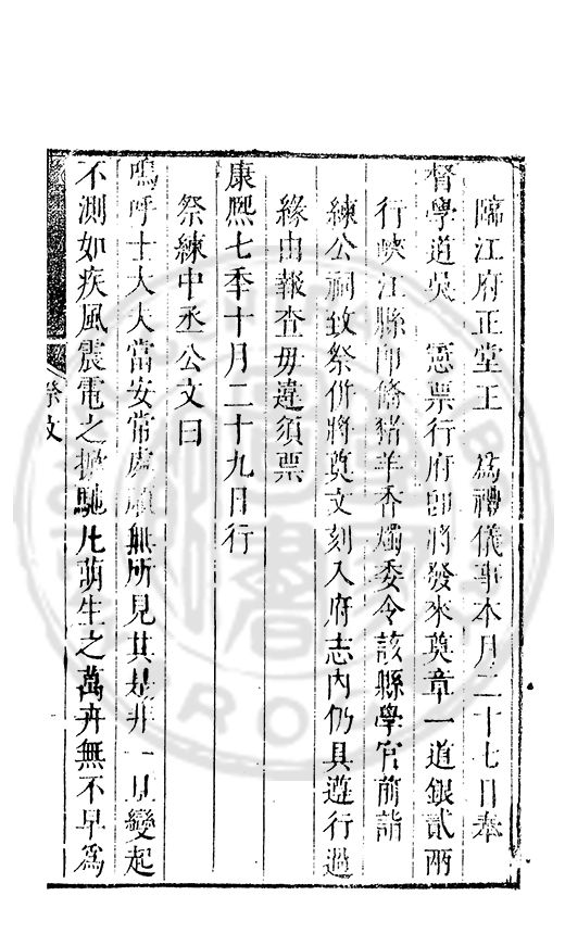 文廟所樂與矣予典教茲土於茲□之人心無能有所憎惟其敬拜先生自興起其本心本心□泯治世則惟良臣亂世則為忠臣無□不□也是設□□□為不小矣祠建于縣治之□負山□□□□