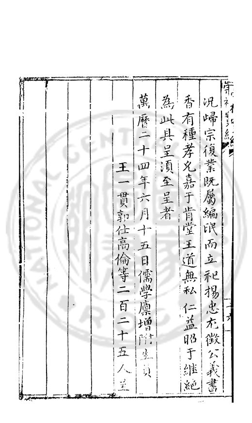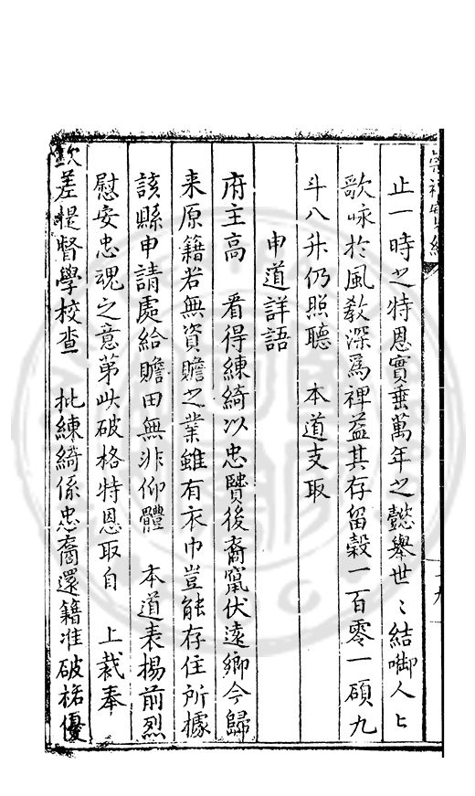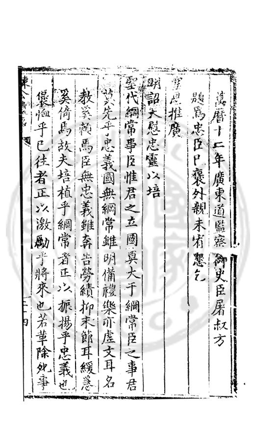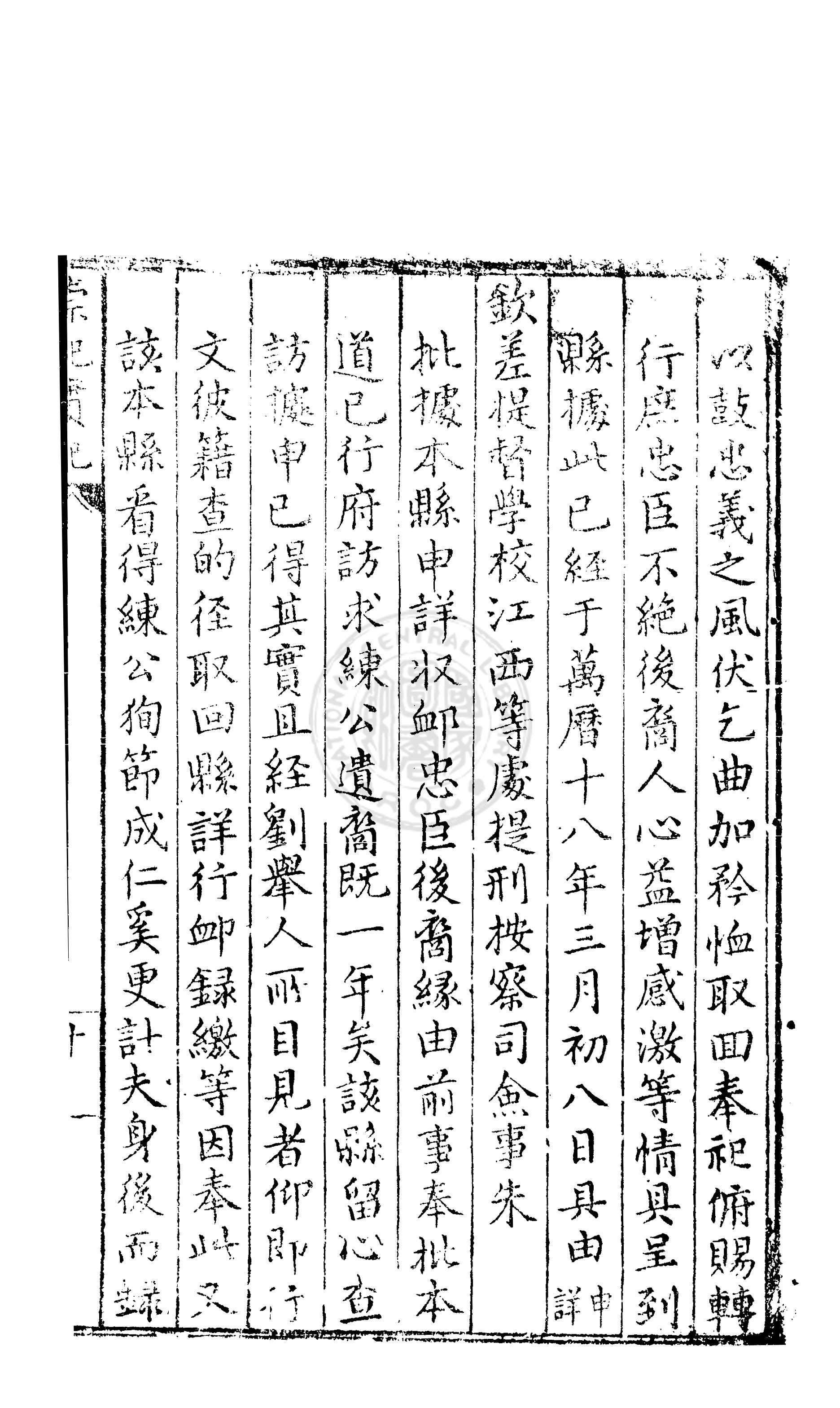 聖代綱常事臣惟君之國奠大于綱常之事君莫先乎忠義國無綱常雖明備禮樂亦虔文耳名教奚□焉臣無忠義雖□苦勞績抑末節耳緩急奚倚焉故夫培植乎綱常者正以振揚乎忠義也褒恤乎已徃者正以激勵乎將來也若輩除死事