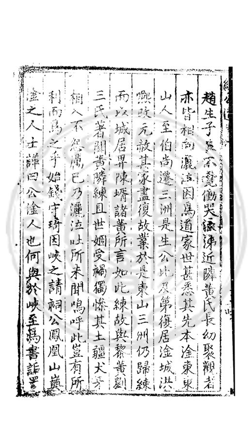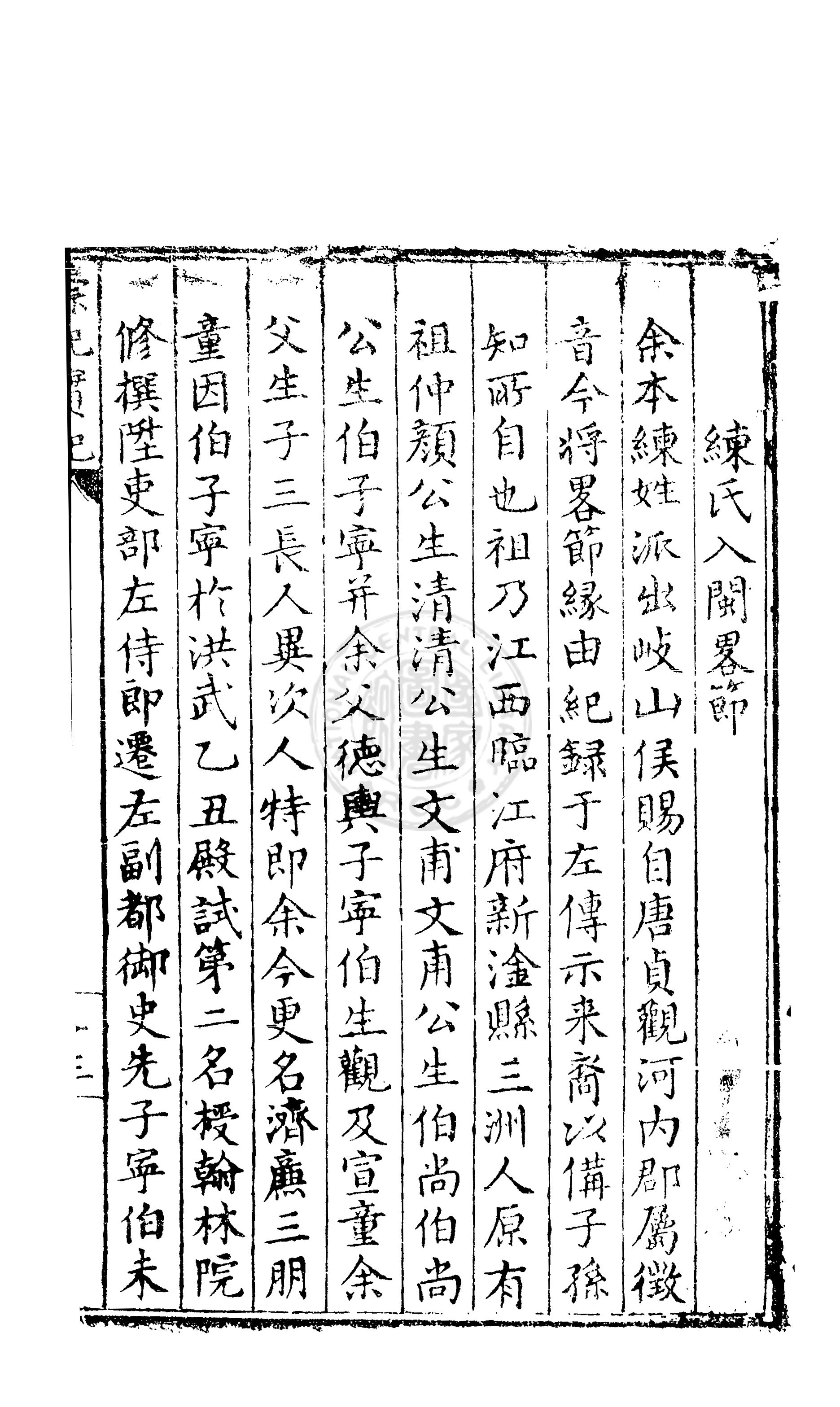 趙生子良不覺痛哭流涕近鄰黃氏長幼聚觀者亦皆相向灑泣因為道其家世甚悉練本淦東東山人至伯尚遷三洲是生公比及第複居淦城洪熙改元赦其家盡複故業於是東山三洲仍歸練而以城居畀陳壻諸黃所言如此練故與黎黃劉三氏著聞黃鄰練且世婣受禍獨慘其土疆犬牙相入不怨厲巳乃灑泣吐所未聞嗚呼此豈有所利而為之乎始錢守琦因峽之請祠公鳳凰山巔淦之人士嘩曰公淦人也何與於峽至為書詬詈