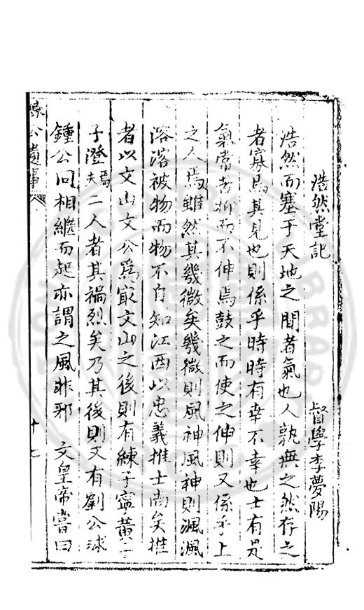 使練子寧等在朕固當用之嗚呼帝之徳至矣豈欲鼓天下之氣而慮其有弗伸邪不然何聞其風者之興之勃也夫忠孝常變一也有不一者係乎時者也茍時矣即不幸猶幸也故曰其見也係乎時反是則人矣非氣之罪也知風之自與時偕行煥乎事業炳乎文章沛乎與天地流行嗚呼微斯人其孰當之哉此所謂浩然之氣也予至金川顧瞻練公故里既令立祠祠之刋其遺文以布又名其祠之後堂曰浩然堂記焉