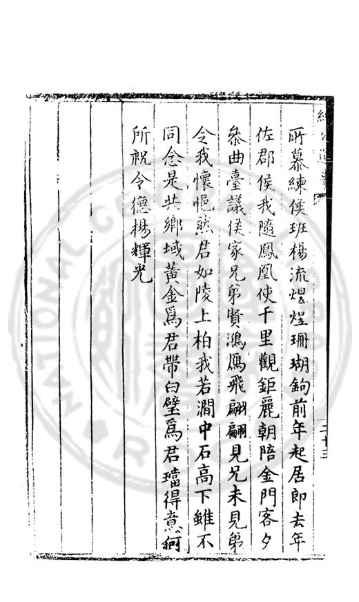 所慕練侯班楊流煜煜珊瑚鉤前年起居即去年佐郡侯我隨鳳凰使千里觀鉅麗朝賠金門客夕參曲臺議侯家兄弟賢鴻雁飛翩翩見兄未見弟令懷□然君如陵上柏我若堅澗中石高下雖不同念是共鄉域黃金為君帶白璧為君璫得意何所祝令德楊輝光