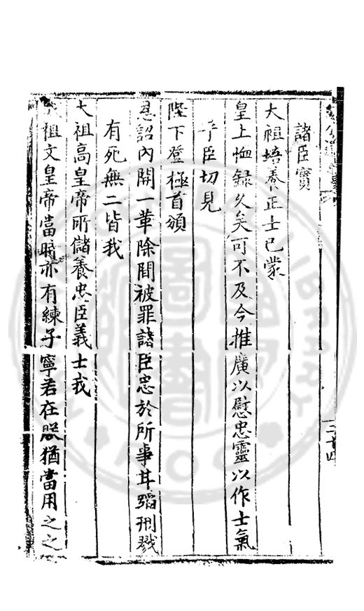 召用忠賢培養元氣此秋殺春生之天道也獨於□項諸臣體悉未至豈所以快忠義而勵將來乎□竊謂爭功節義本非二事灭有