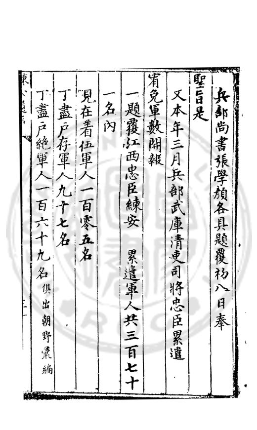 一題覆江西忠臣練安累遣軍人共三百七十一名內