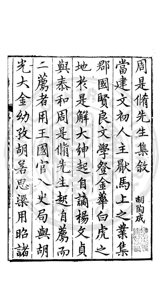 周是脩先生集敘 胡陶成當建文初人主猒馬上之業集郡國賢良文學豋金蕐白虎之地扵是觧大紳起自謫楊文貞與泰和周是脩先生起自薦而二薦者用王國官入史局與胡光大金幼孜胡若思梁用昭諸