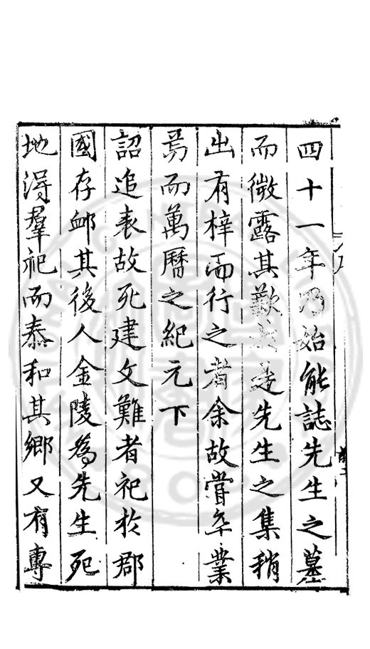 四十一年乃始能誌先生之墓而微露其歉扵是先生之集稍出有梓而行之者余故甞卒業焉而萬曆之紀元下詔追表故死建文難者祀扵郡國存卹其後人金陵為先生死地淂羣祀而泰和其鄉又有專
