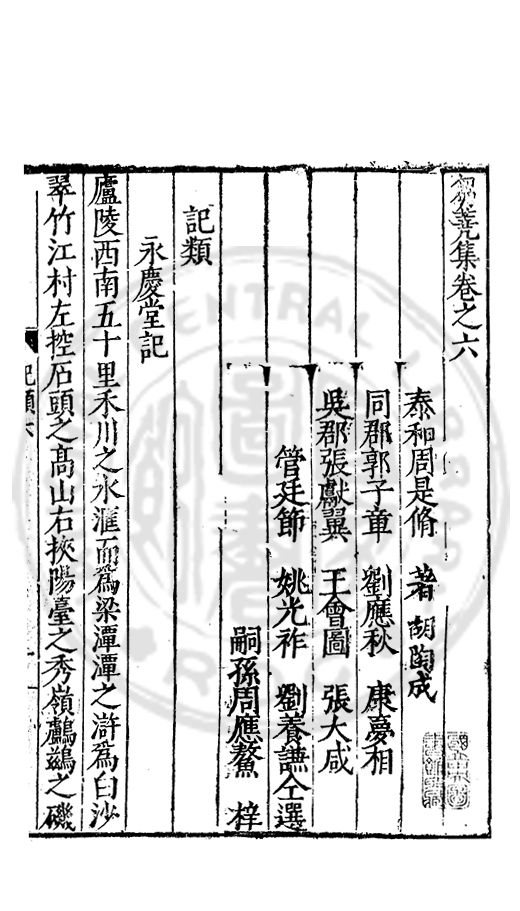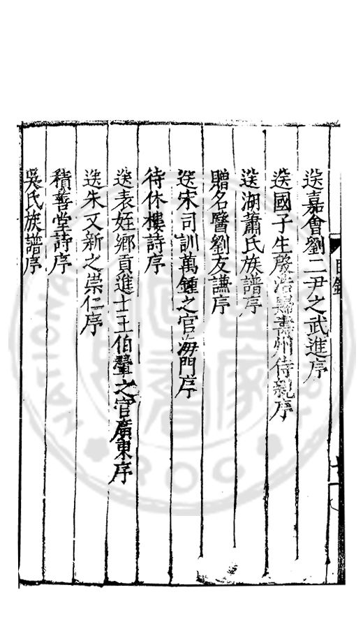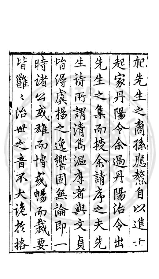 祀先生之裔孫應鰲自以進士起家丹陽令余過丹陽治令出先生之集而授余請序之夫先生詩所謂清雋溫厚者與文貞皆淂虞揚之逸響固無論即一時諸公或雄而博或暢而裁要皆雝雝治世之音不大詭扵挌