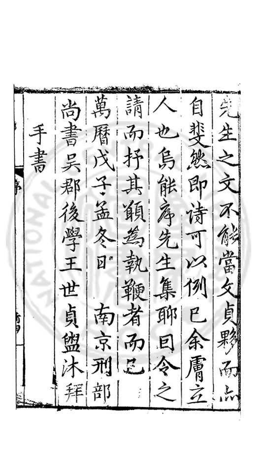 萬曆戊子孟冬日南京刑部