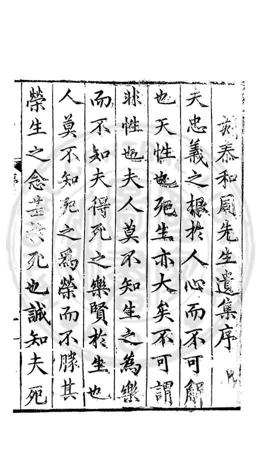 夫忠義之根於人心而不可解也天性也死生亦大矣不可謂非性也夫人莫不知生之為樂而不知夫得死之樂賢扵生也人莫不知死之為榮而不□其榮生之念甚扵死也誠知夫死