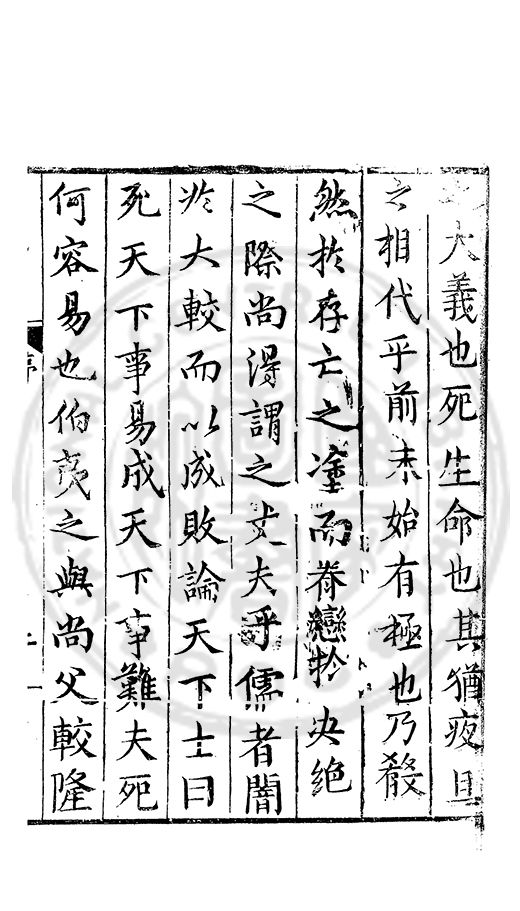 之大義也死生命也其猶夜旦之相代乎前未始有極也乃殽然扵存亡之塗而眷戀扵决絶之際尚淂謂之丈夫乎儒者闇扵大較而以成敗論天下士曰死天下事易成天下事難夫死何容易也伯夷之與尚父較隆