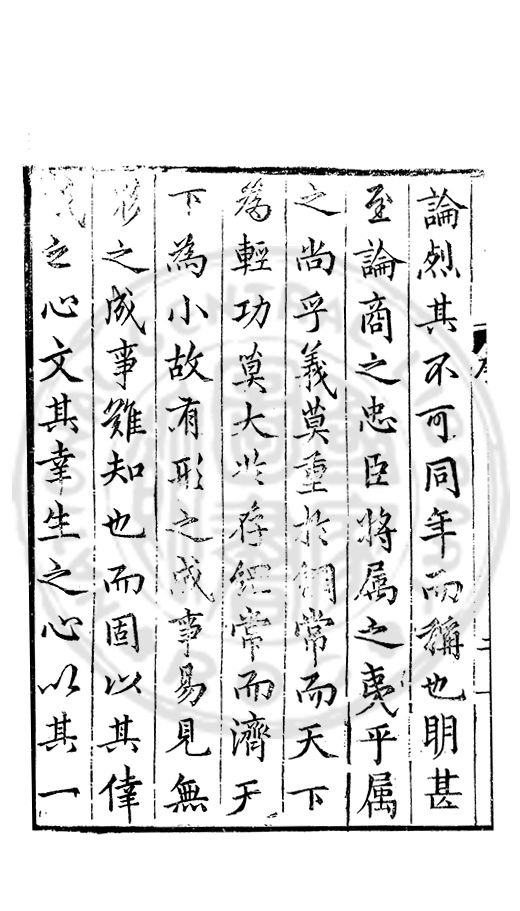 論烈其不可同年而稱也眀甚至論商之忠臣将属之夷乎属之尚乎義莫重扵綱常而天下為輕功莫大扵存綱常而濟天下為小故有形之成事易見無形之成事難知也而固以其倖□之心文其幸生之心以其一