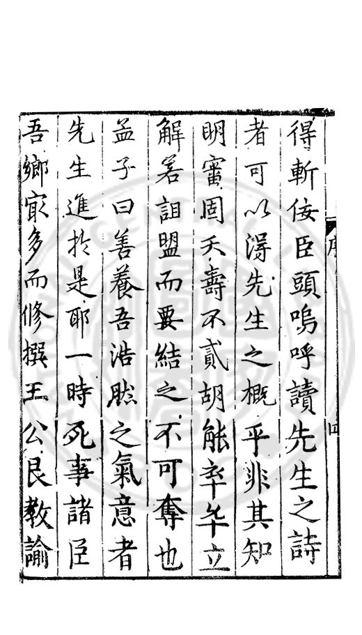 得斬佞臣頭嗚呼讀先生之詩者可以淂先生之概乎非其知眀審固夭壽不貳胡能卒卒立解若詛盟而要結之不可奪也孟子曰善養吾浩然之氣意者先生進扵是耶一時死事諸臣吾鄉冣多而修撰王公艮教諭