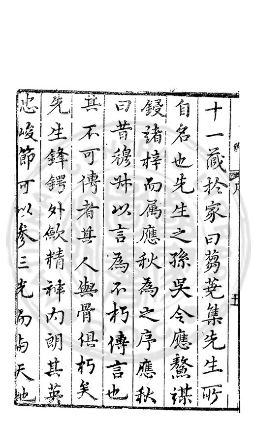 為常百世之下有聞風興起者猶旦莫遇之也惡用言傳先生其以此為贅疣乎雖然弓箭桮捲先人之手澤存焉匣而藏之重之至也矧其遺書也乎哉讀其書而愀然見容遒然動色求忠扵孝呉令之用心可睹矣茲