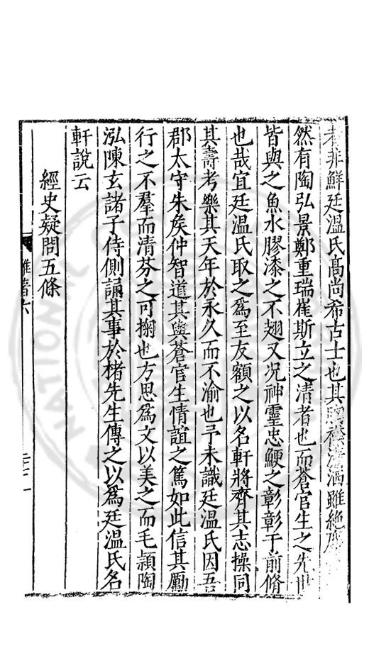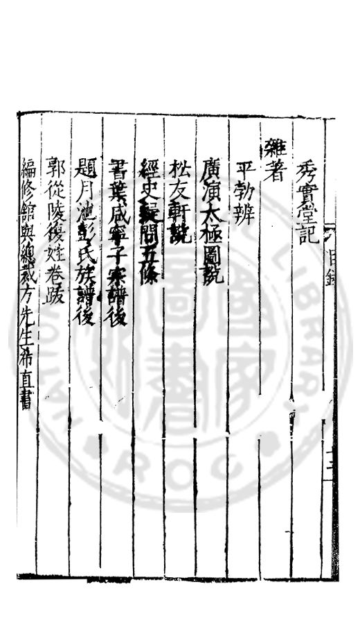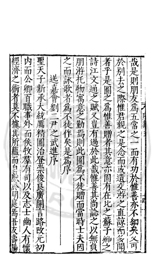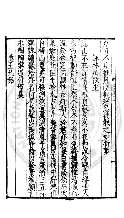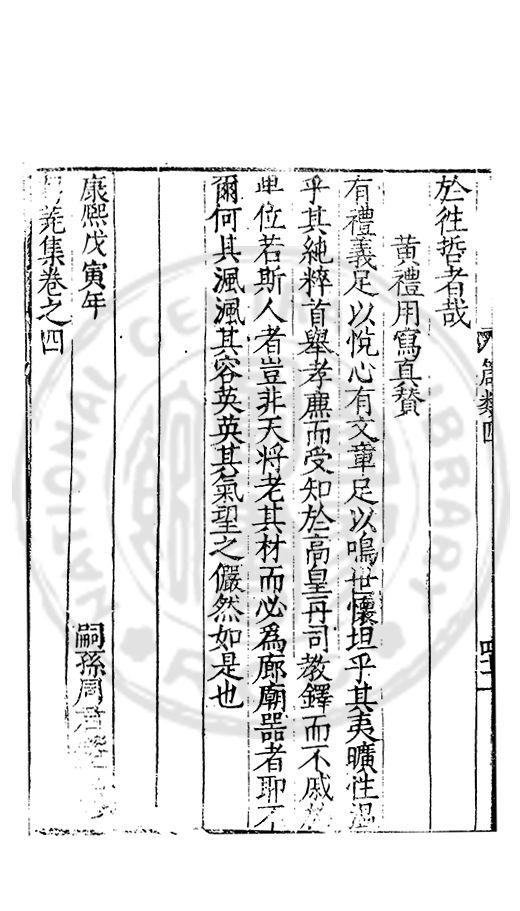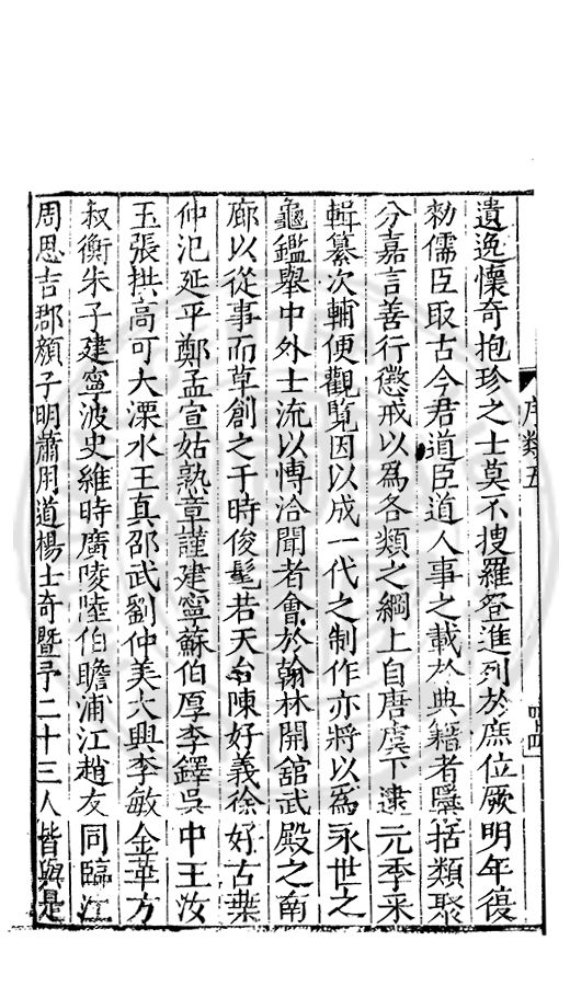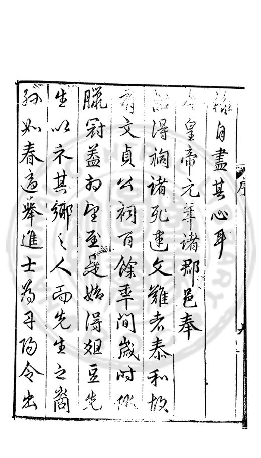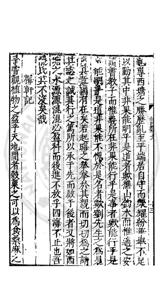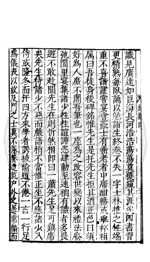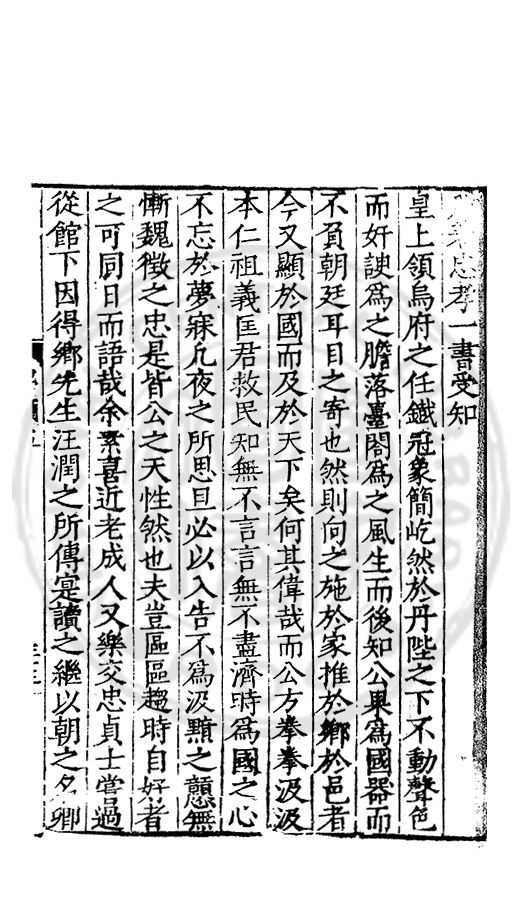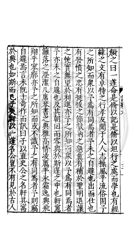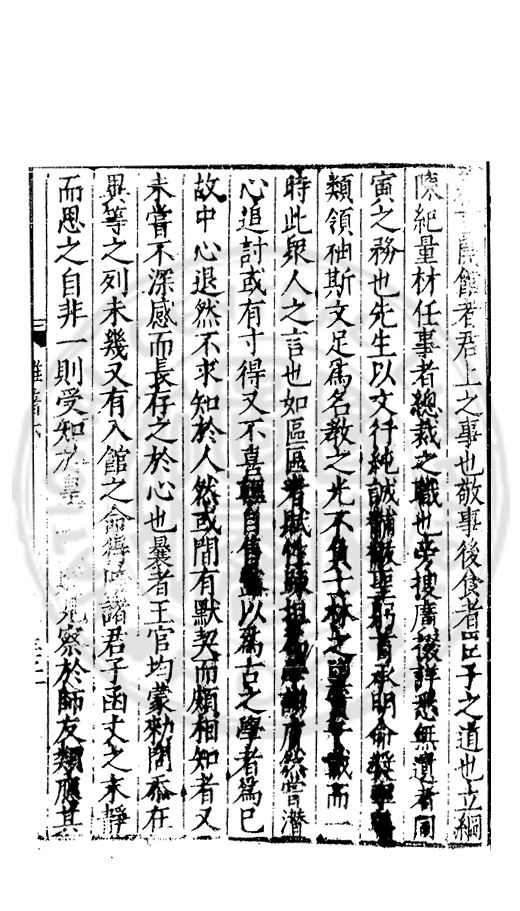 □□開館者君上之事也敬事後食者臣子之道也立綱陳紀量材任事者總裁之職也旁搜廣掇詳悉無遺者同寅之務也先生以文行純誠黼黻聖躬首承明命奬□□類領袖斯文足爲名教之光不負士林之□□□□而一時此衆人之言也如區區者賦性踈坦□□□□然嘗潜心追討或有寸得又不喜輕自售□以爲古之學者爲巳故中心退然不求知於人然或間有黙契而頗相知者又未嘗不深感而長存之於心也曩者王官均蒙勑問忝在異等之列未幾又有入館之命得□諸君子函丈之末靜而思之自非一則受知於皇□□□見察於師友類應其