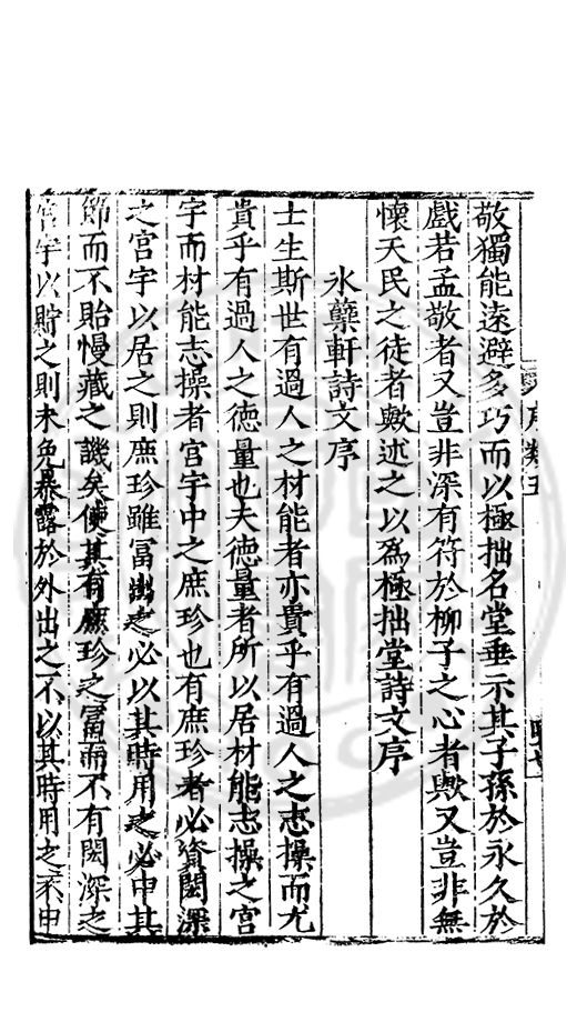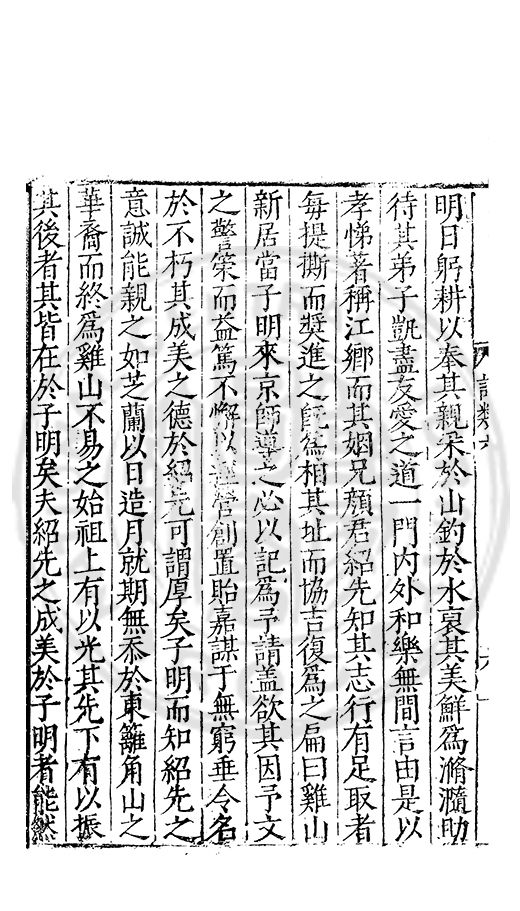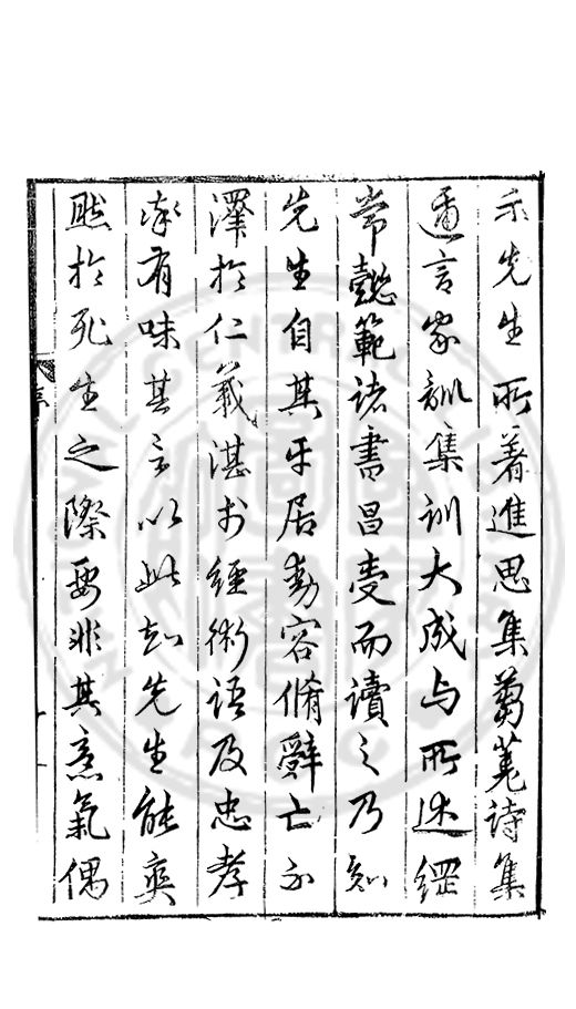 示先生所著進思集芻蕘詩集邇言家訓集訓大成與所述綱常懿範諸書昌受而讀之乃知先生自其乐居動容脩辤亡澤扵仁義湛経術語及忠孝率有味其言以此知先生能爽然扵死生之際要非其義氣偶