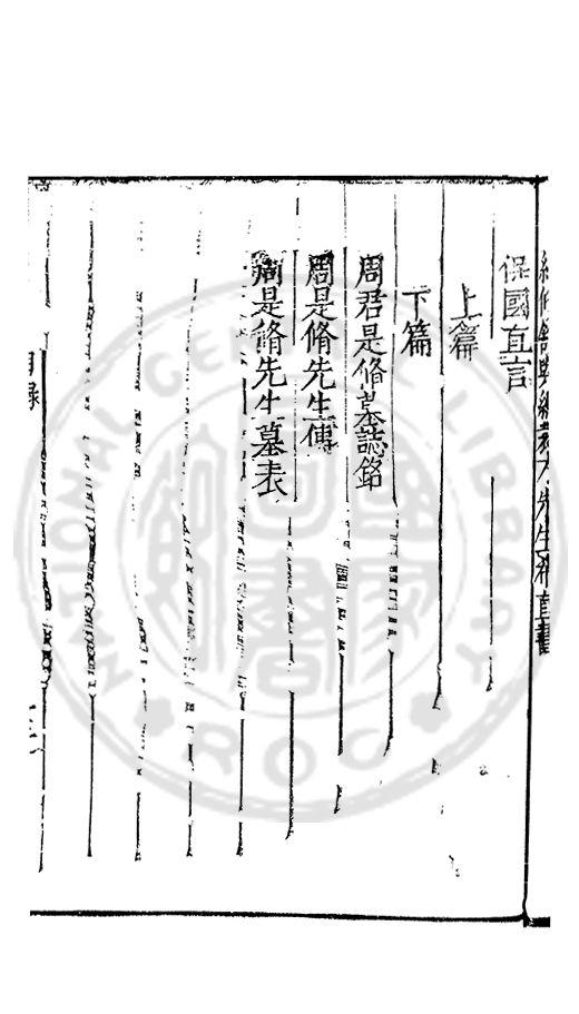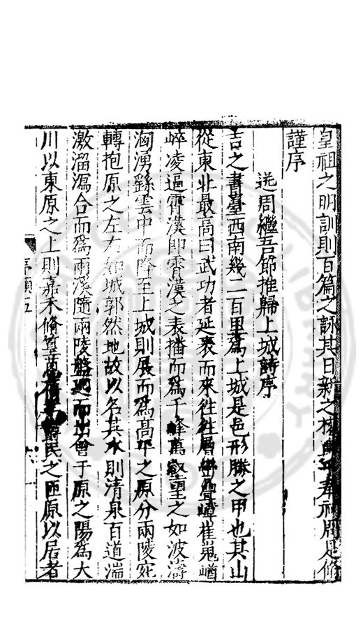 歲二月十六日衡府紀善臣周是脩謹再拜譔進保國直言一篇惟願殿下恕其戅愚賜之采覽庻幾下不負於爲臣忠藎之懇上有資於爲國永久之基則中外幸甚臣聞自古創業的人主平定了天下便選各處好地靣分封親