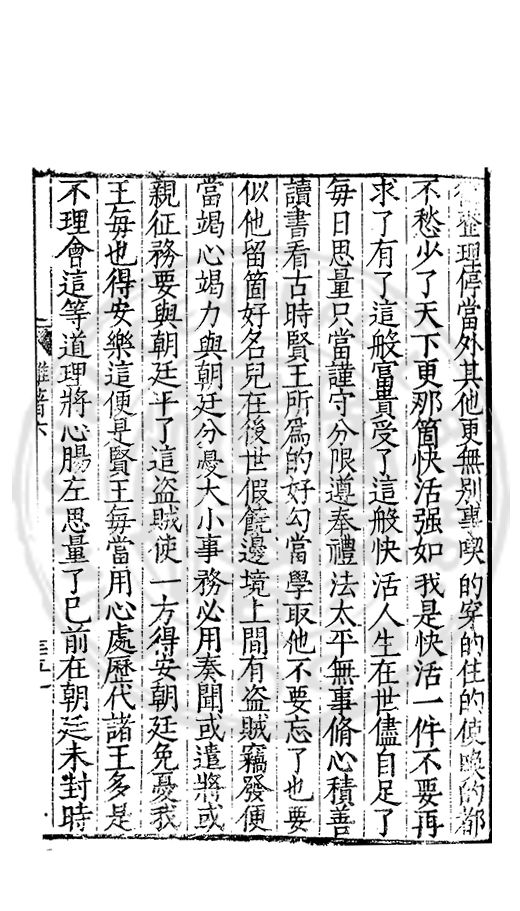 □整理停當外其他更無别事喫的穿的住的使喚的都不愁少了天下更那箇快活强如我是快活一件不要再求了有了這般富貴受了這般快活人生在世儘自足了每日思量只當謹守分限遵奉禮法太平無事脩心積善讀書看古時賢王所爲的好勾當學取他不要忘了也要似他留箇好名兒在後世假饒邊境上間有盗賊竊發便當竭心竭力與朝廷分憂大小事務必用奏聞或遣將或親征務要與朝廷平了這盗賊使一方得安朝廷免憂我王每也得安樂這便是賢王每當用心處歷代諸王多是不理會這等道理將心腸左思量了已前在朝廷未封時