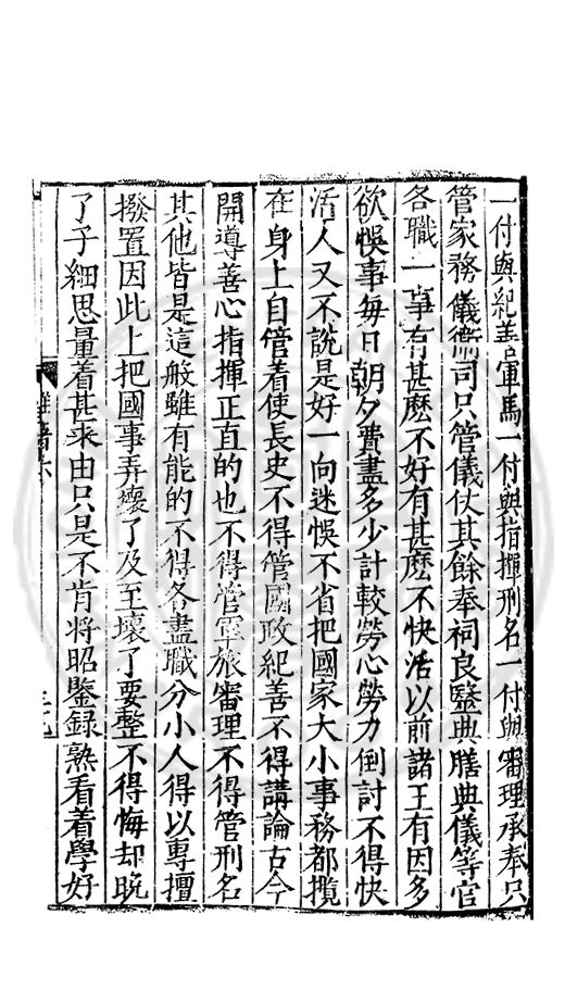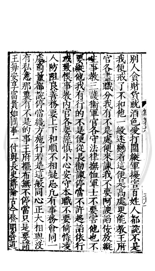 一付與紀善軍馬一付與指揮刑名一付與審理承奉只管家務儀衞司只管儀仗其餘奉祠良毉典膳典儀等官各職一事有甚麽不好有甚麽不快活以前諸王有因多欲悞事每日朝夕費盡多少計較勞心勞力倒討不得快活人又不説是好一向迷悞不省把國家大小事務都攬在身上自管着使長史不得管國政紀善不得講論古今開導善心指揮正直的也不得管軍旅審理不得管刑名其他皆是這般雖有能的不得各盡職分小人得以專擅撥置因此上把國事弄壊了及至壊了要整不得悔却晚了子細思量着甚来由只是不肯將昭鍳録熟看着學好