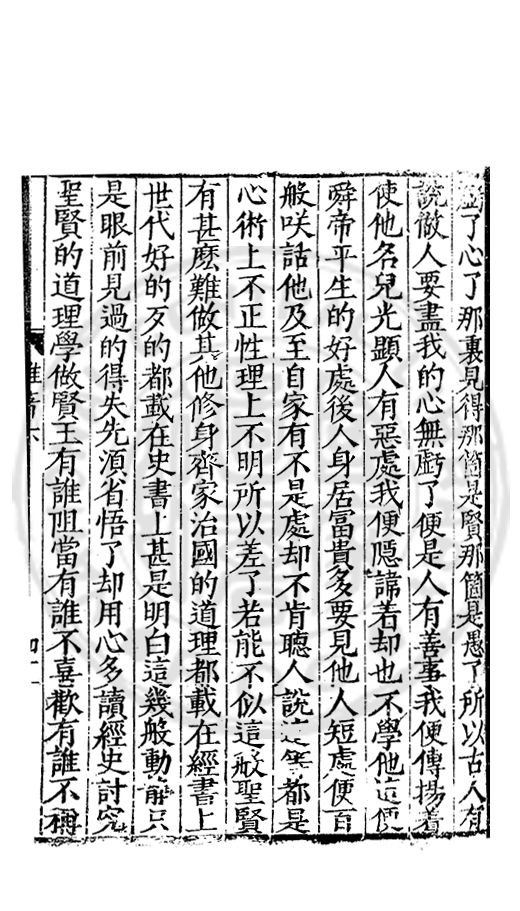 虧了心了那裏見得那箇是賢那箇是愚了所以古人有説做人要盡我的心無虧了便是人有善事我便傳揚着使他名兒光顕人有惡處我便隱諱着却也不學他這便舜帝平生的好處後人身居冨貴多要見他人短處便百般咲話他及至自家有不是處却不肯聴人説這等都是心術上不正性理上不明所以差了若能不似這般聖賢有甚麽難做其他修身齊家治國的道理都載在經書上世代好的歹的都載在史書上甚是明白這幾般動静只是眼前見過的得失先湏省悟了却用心多讀經史討究聖賢的道理學做賢王有誰阻當有誰不喜歡有誰不稱