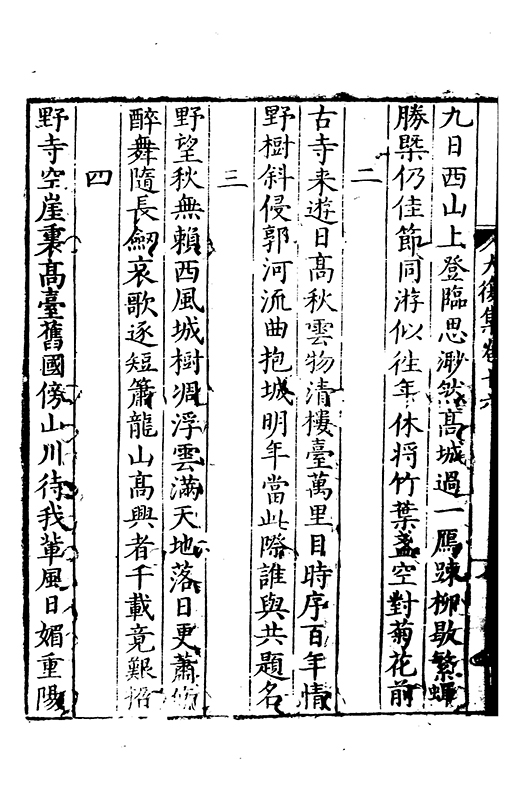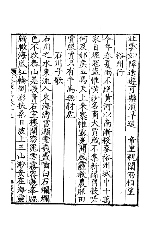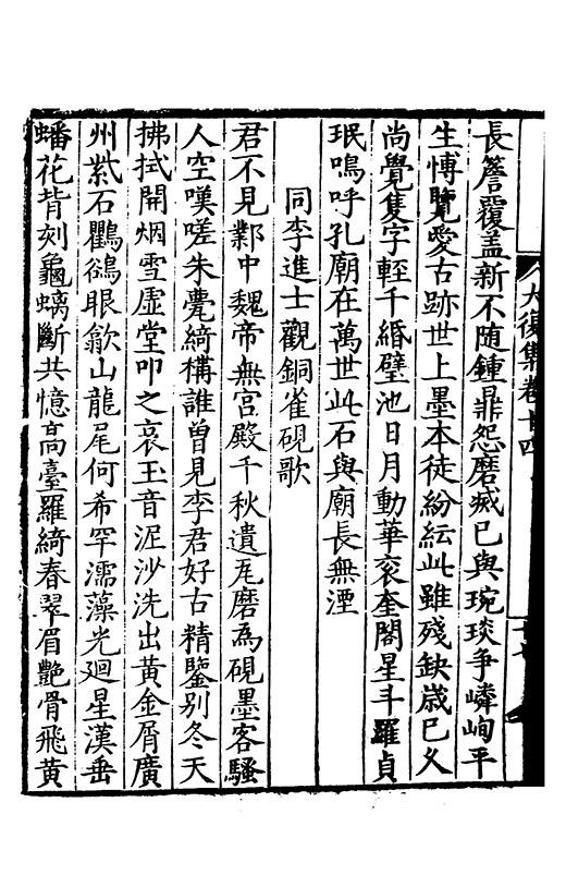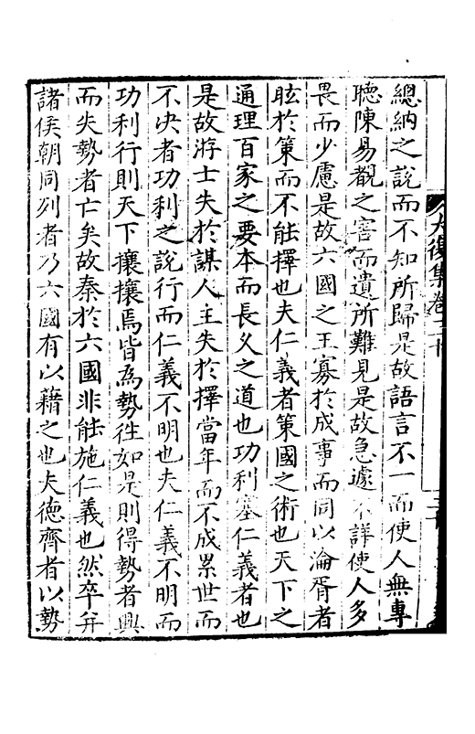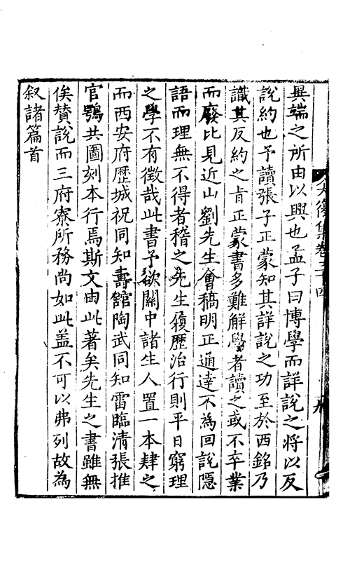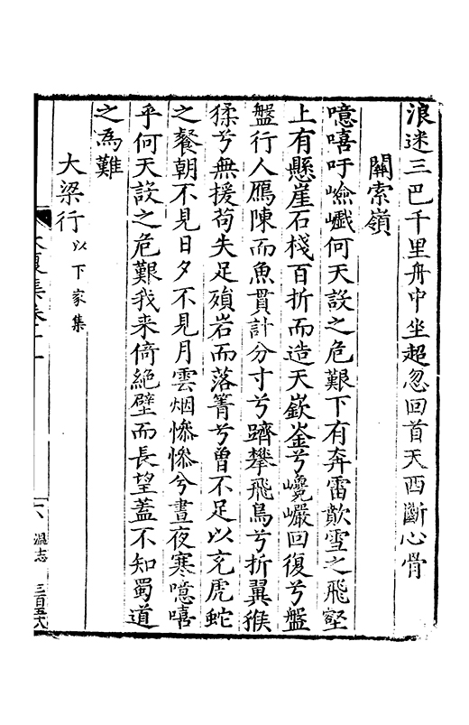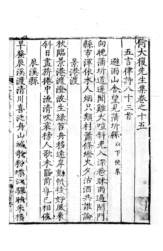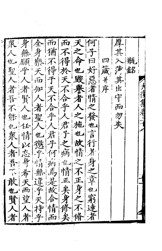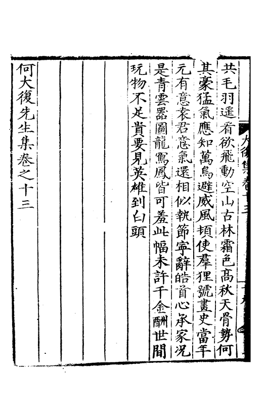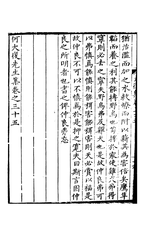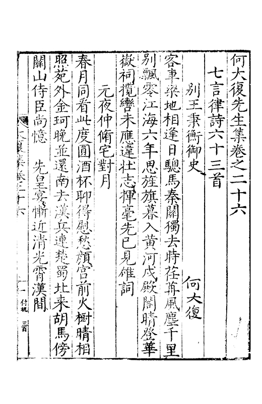 辭孰不修風調孰不循德履孰不習終格扵不類者天畀之解未神爾正德末余督學四川大復督學關中一日走書曰孔孟藐矣學漸支離塗岐矣後生汶汶以塞邇得論説數十欲與君約境上之會期越月之講然竟不果來今集亦不見有此論豈終未成耶抑遺之耶悲哉悲哉其未之究竟者若此天實為之矣漁石唐子曰以何子之才而得壽考廓而大之綸而不息殆潏乎河漢而無涯也嗟嗟豈不信然哉大復集辭賦三卷四言古詩一卷樂府二卷使集二卷家集五卷京集七卷秦集一卷内篇一卷外篇四卷