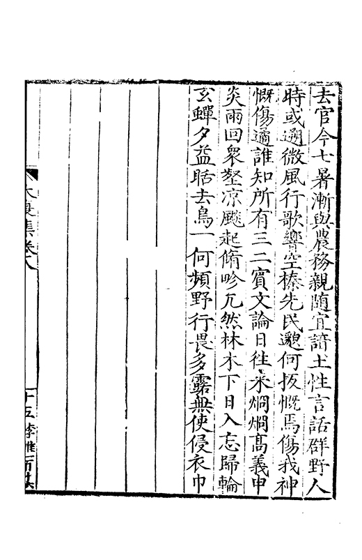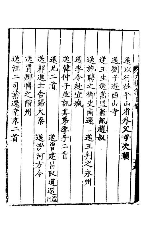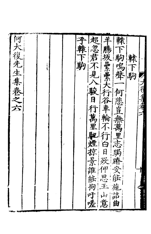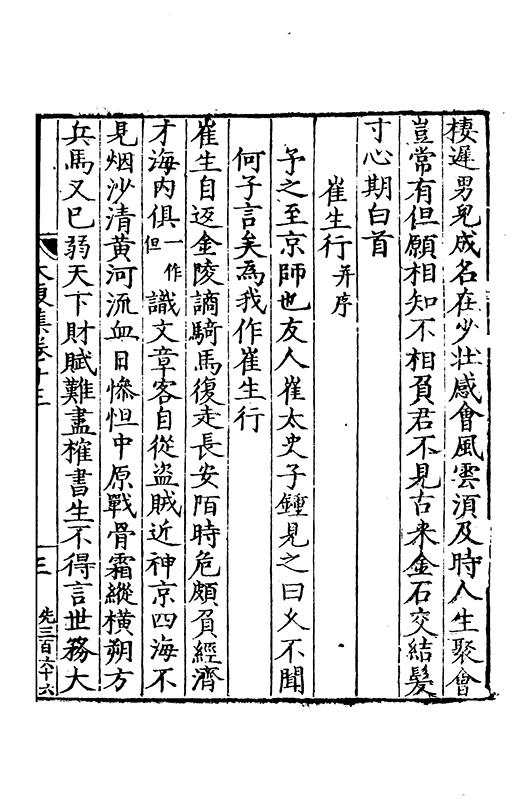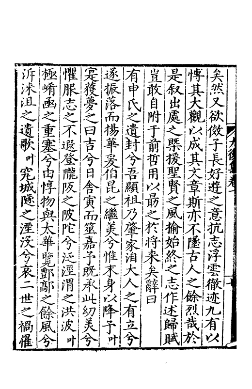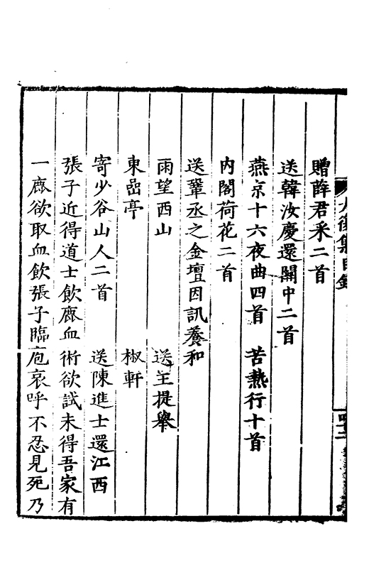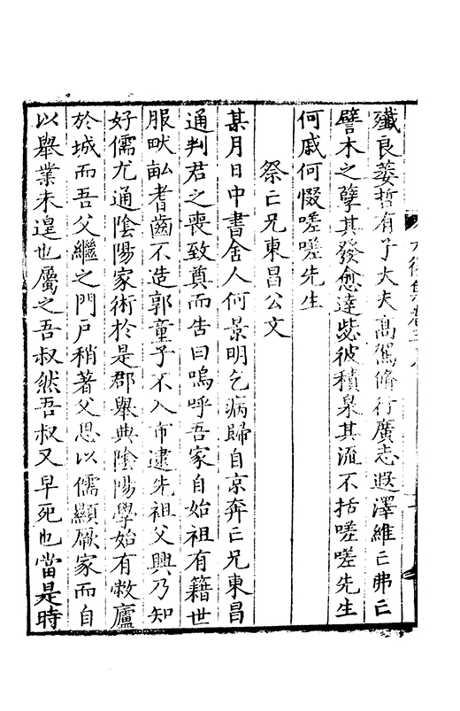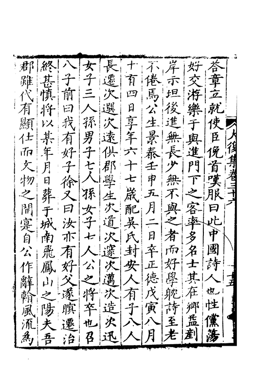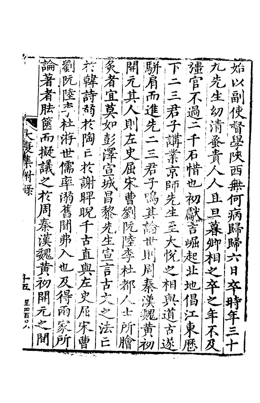 始以副使督學陜西無何病歸歸六日卒時年三十九先生幼清蚤貴人人且旦暮卿相之卒之年不及彊官不過二千石惜也初獻吉崛起北地倡江東厯下二三君子講業京師先生至大悅之相與道古遂駢肩而進先二三君子鳴其論世則周秦漢魏黄初開元其人則左史屈宋曹劉阮陸李杜都人士所膾炙者宜莫如彭澤宣城昌黎先生宣言古文之法亡扵韓詩弱扵陶亡扵謝睥睨千古直與左史屈宋曹劉阮陸李杜游世儒率溺舊聞弗入也及得兩家所論著者胠篋而擬議之扵周秦漢魏黄初開元之間