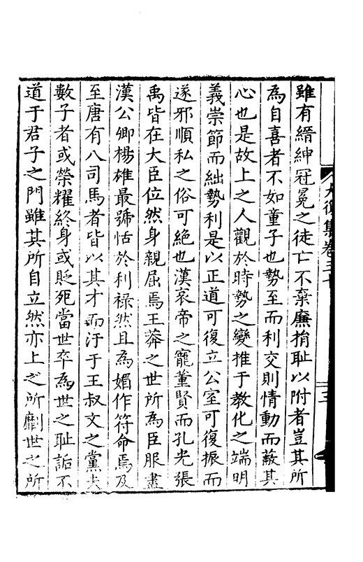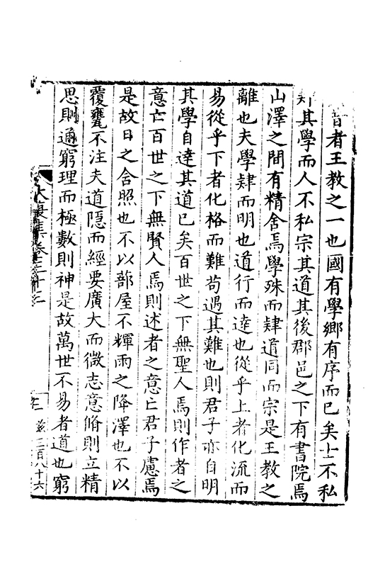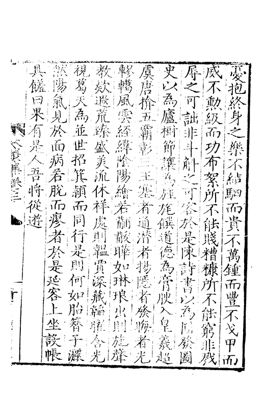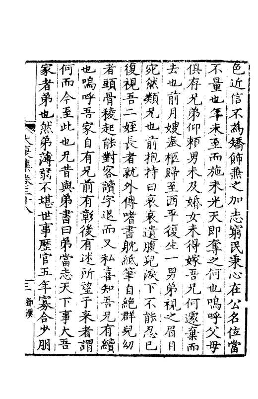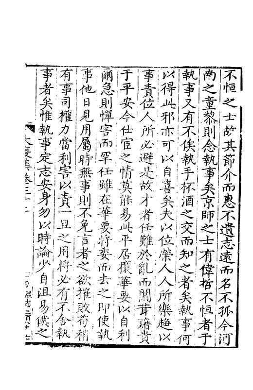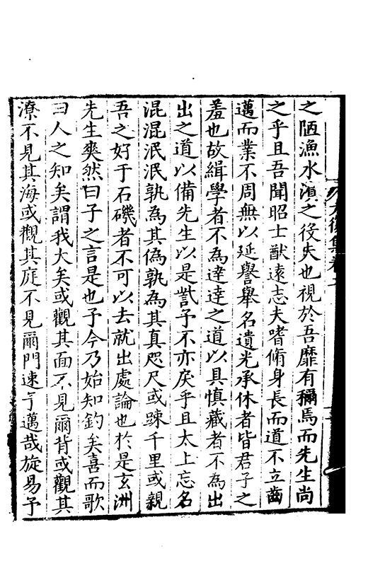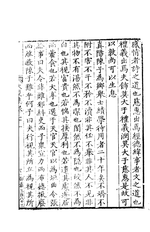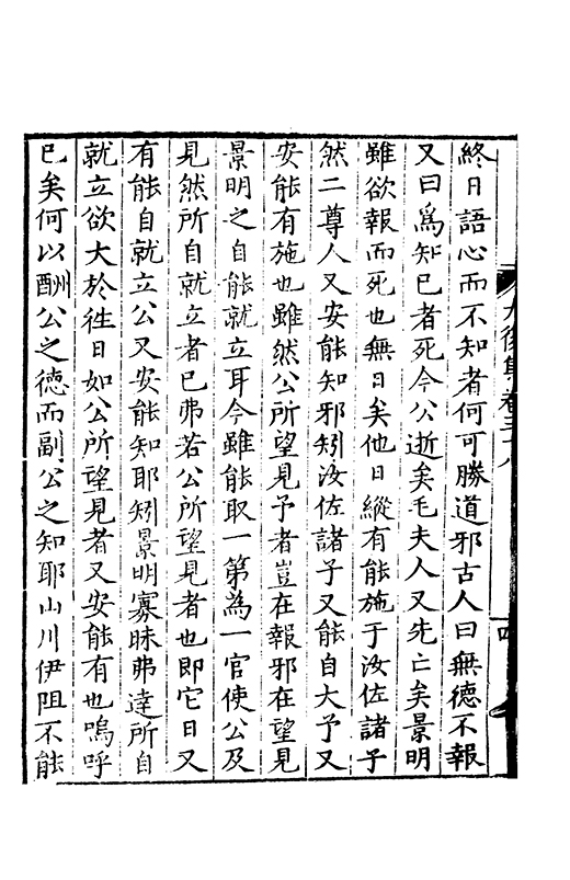 逮没齒未嘗一問家産而人有緩急則又無不各厭其意道弗合者雖隆貴人忍不與見至道藝士即貧賤衰老尤折節下之不倦也夫以彼其才而好脩又若此固蔚然醇儒也獨柰何以文藝少之哉余又嘗讀先生新論十二篇上下古今天人之際至備矣假令托以不御之權則何逺不至乃齎志短折而竟以一學掾死有足傷心流涕者然先生功在斯文節在朝著行在鄊曲固萬世不朽矣而又何恨哉余悲世俗不察其意而猥以詞華之士同類而共訾之也故不著其文而獨詳其行誼大者俾後世得觀覽焉是