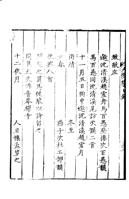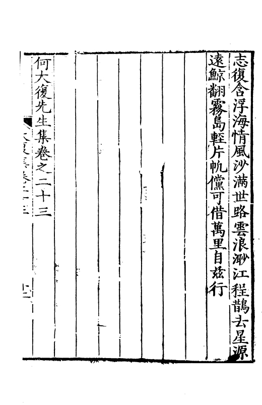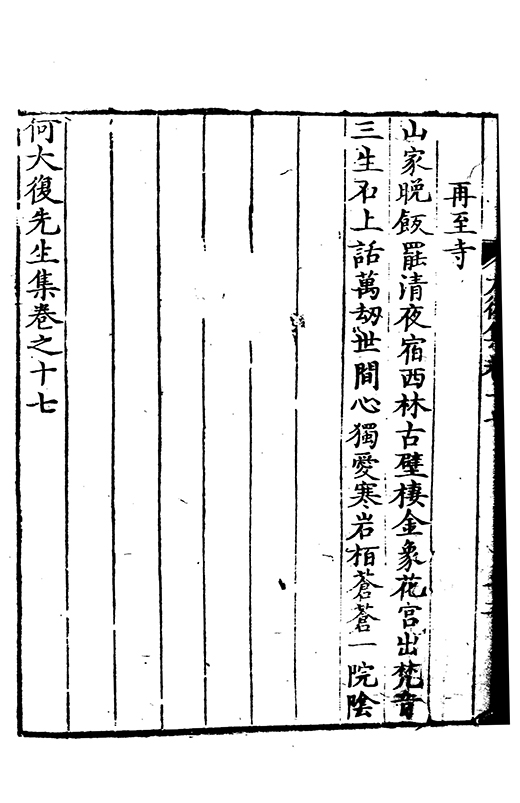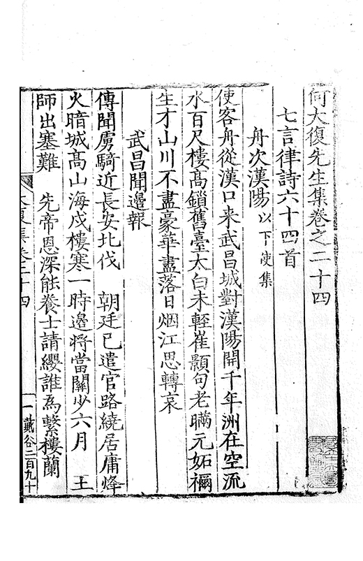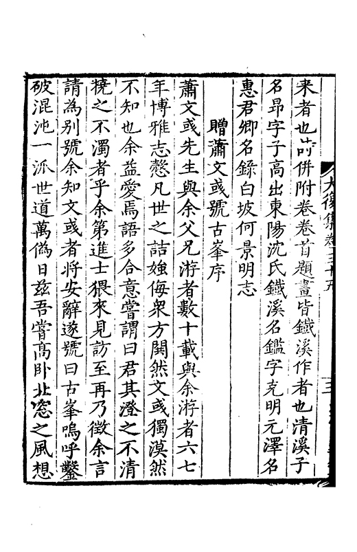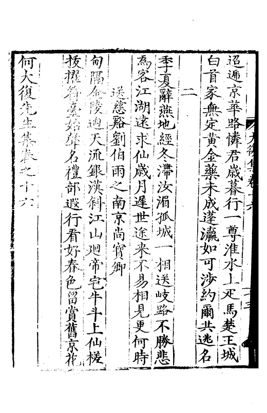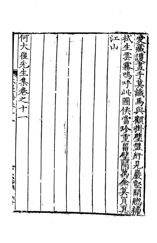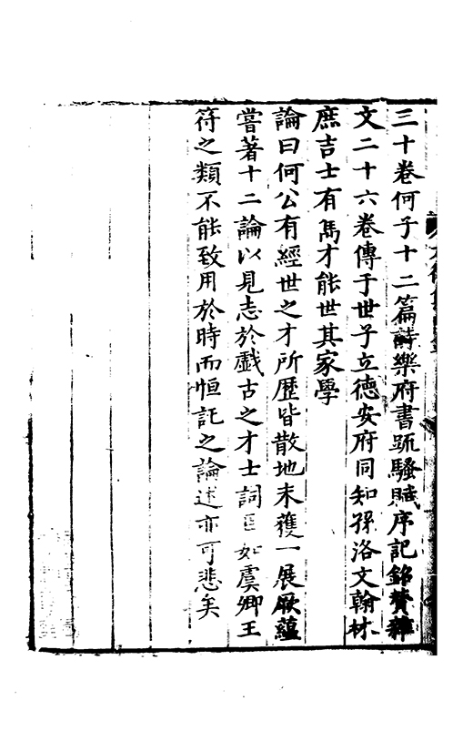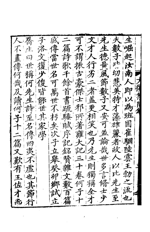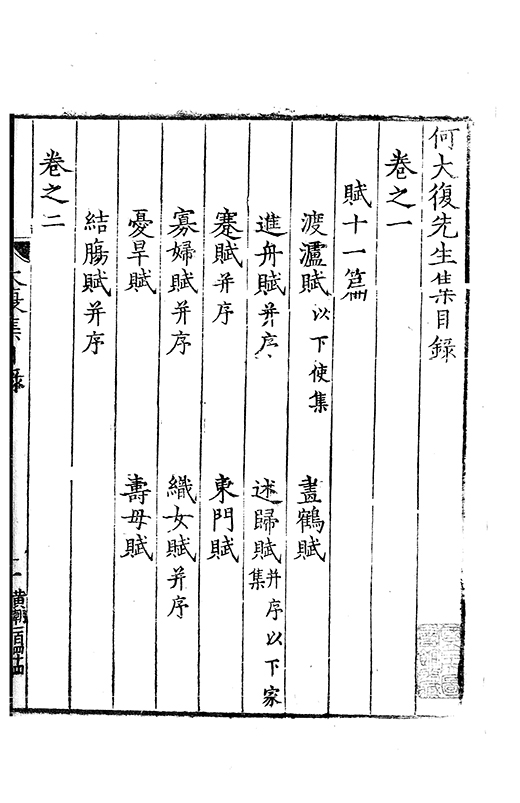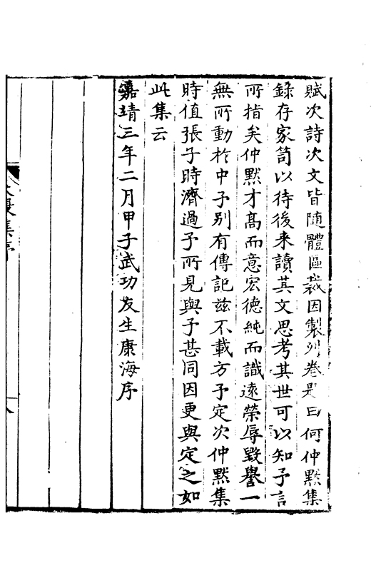 賦次詩次文皆随體區裁因製列卷題曰何仲黙集録存家笥以待後来讀其文思考其世可以知予言所指矣仲黙才高而意宏德純而識遠榮辱毁譽一無所動扵中予别有傳記兹不載方予定次仲黙集時値張子時濟過予所見與子甚同因更與定之如此集云