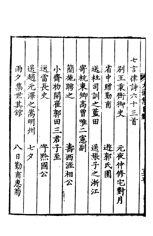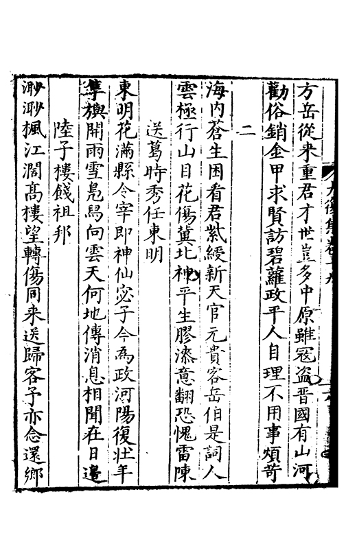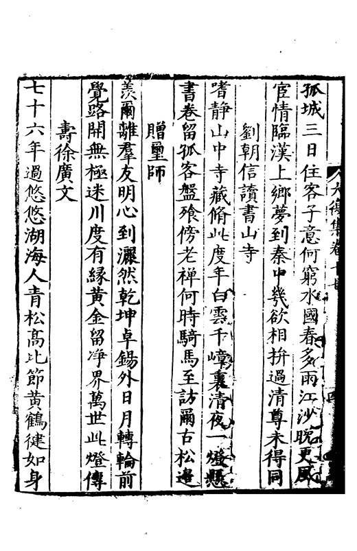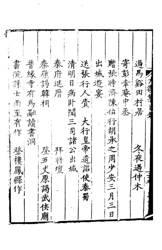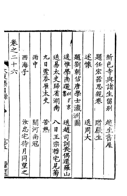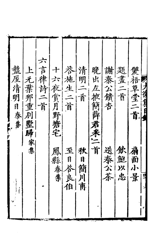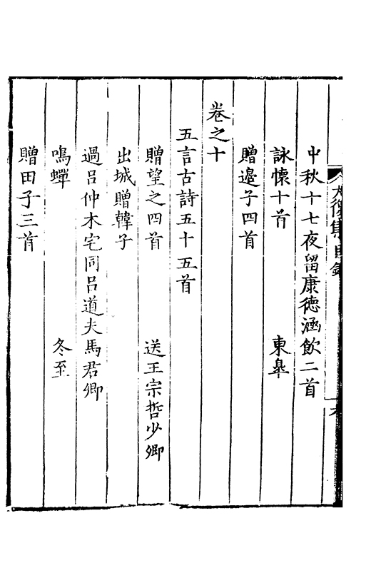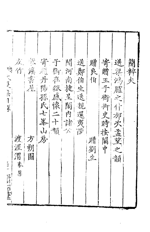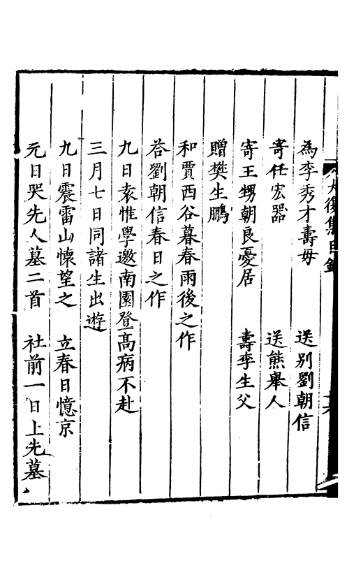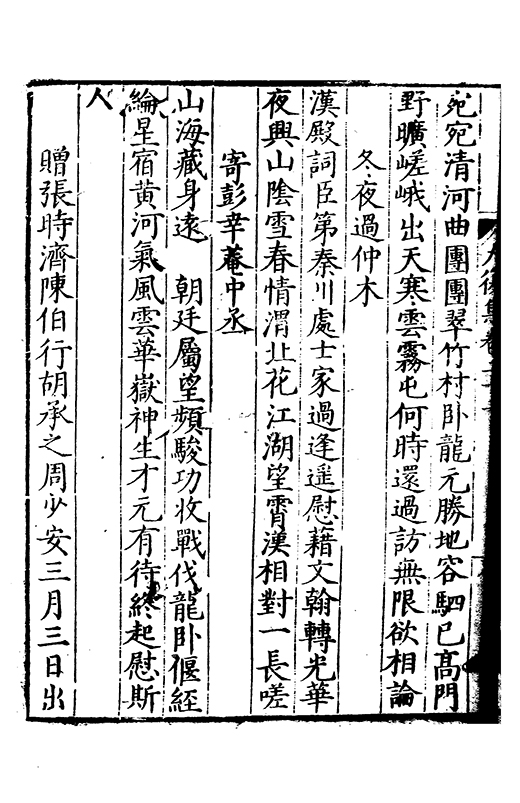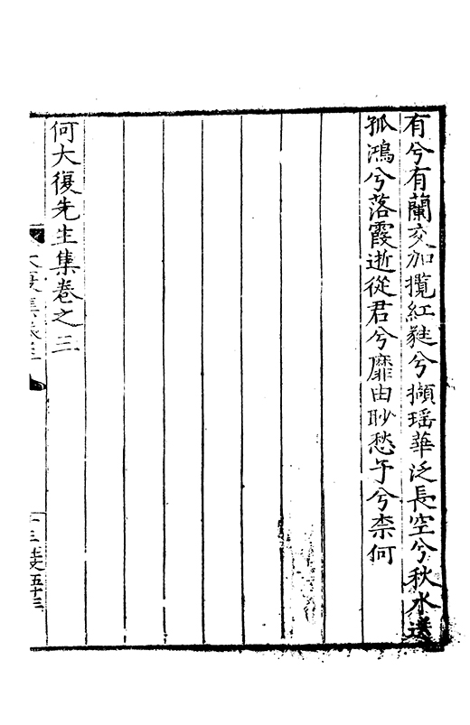 賦次詩次文皆随體區裁因製列卷題曰何仲黙集録存家笥以待後来讀其文思考其世可以知予言所指矣仲黙才高而意宏德純而識遠榮辱毁譽一無所動扵中予别有傳記兹不載方予定次仲黙集時値張子時濟過予所見與子甚同因更與定之如此集云