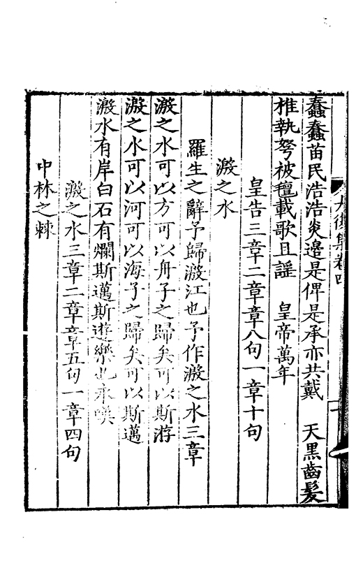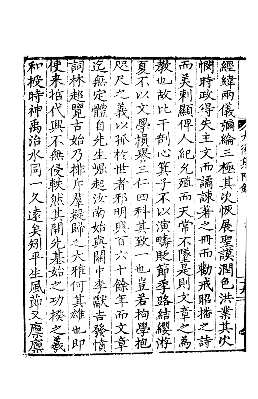 經緯兩儀彌綸三極其次恢展聖謨潤色洪業其次憫時政得失主文而譎諫著之冊而勸戒昭播之詩而美剌顯俾人紀允殖而天常不墜是則文章之為教也故比干剖心箕子不以演疇貶節季路結纓游夏不以文章損譽三仁四科其致一也豈若拘學抱咫尺之義以孤扵世者邪明興百六十餘年而文章迄無定體自先生崛起汝南始與關中李獻吉發憤詞林超覽古始乃排斥羣疑歸之大雅何其雄也即使來哲代興不無侵軼然其開先基始之功揆之羲和授時神禹治水同一久逺矣矧平生風莭又廩廪