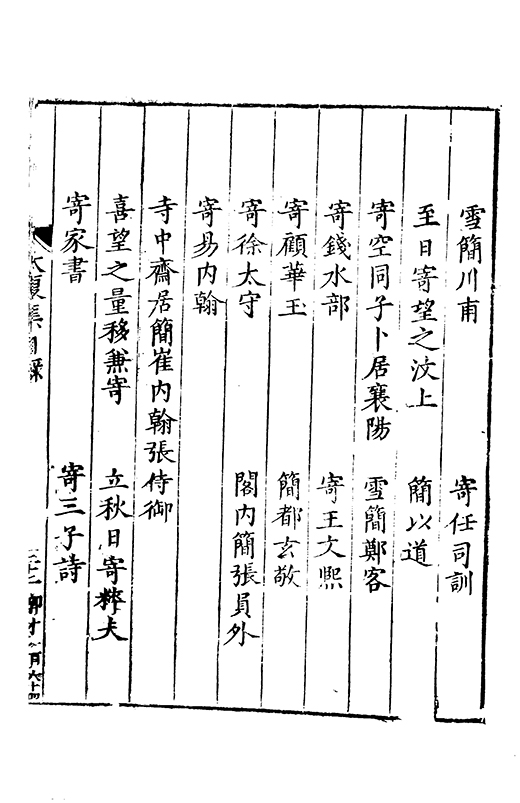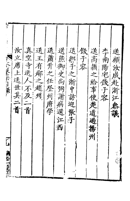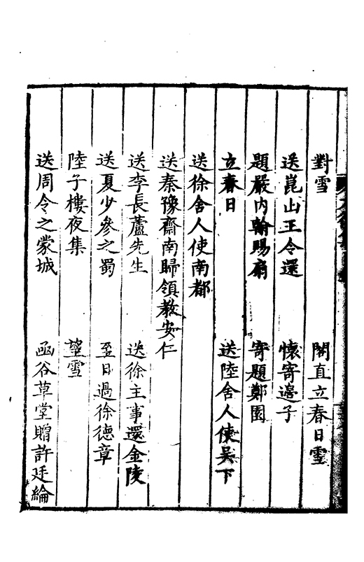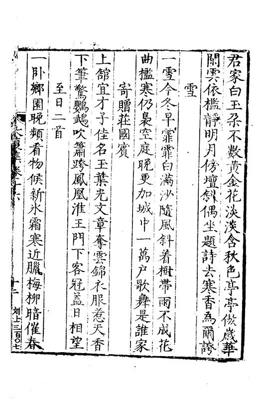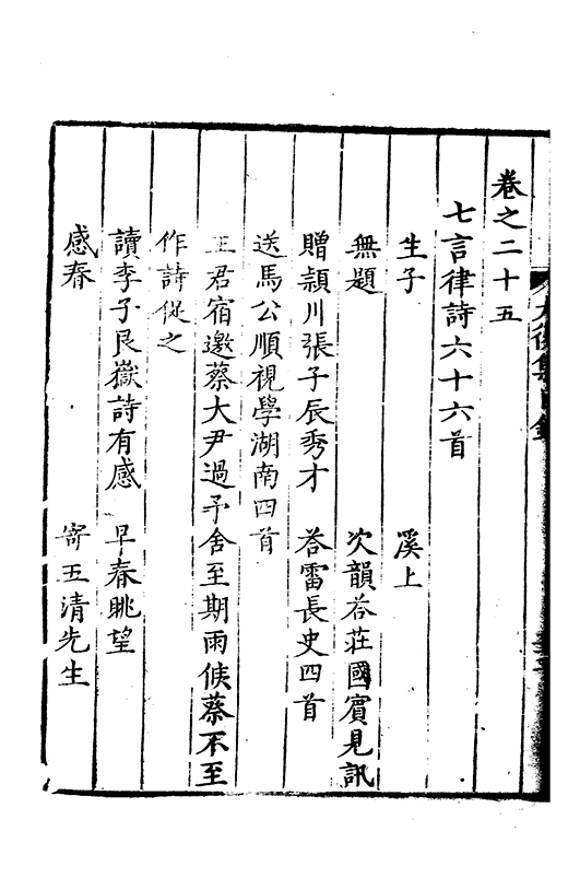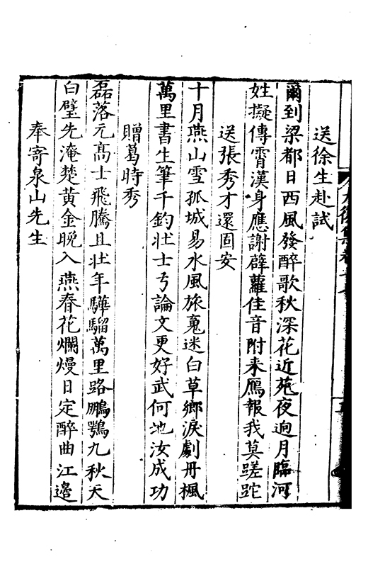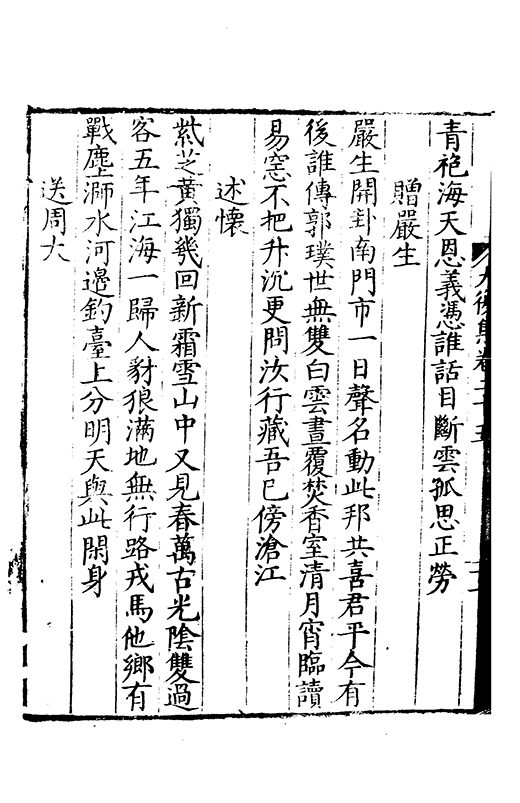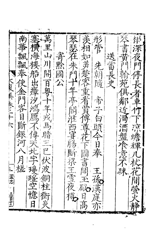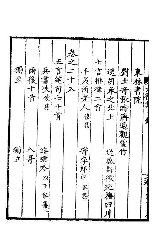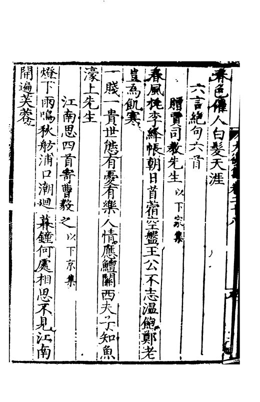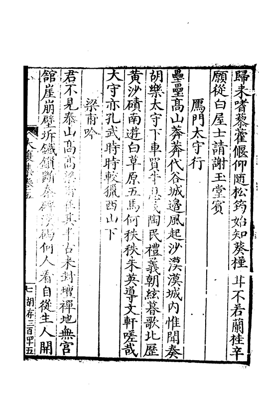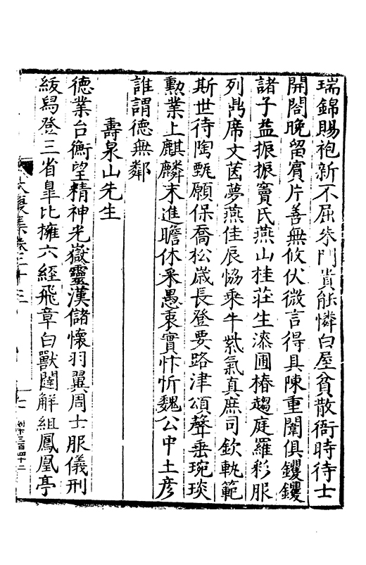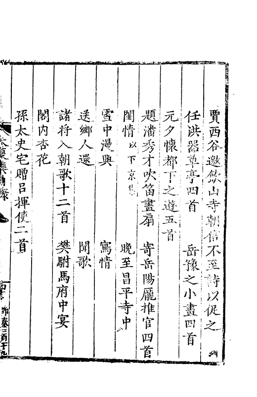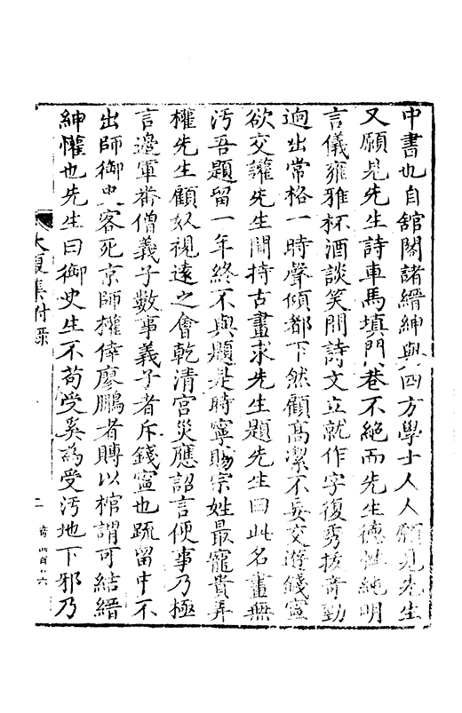 賜姓目攝諸公卿獨以古畫求先生詩待命終嵗卒不予中官廖鵬柄事嘗賻師御史□□□醵諸客購他材力卻鵬所賻者鵬弟鸞席鵬□□陜以西諸叅随騎遇藩臬大夫無所問先生塗□□者輒就馬上縛之乃若使滇不納餽遺居喪不禫不飲厯仕十餘