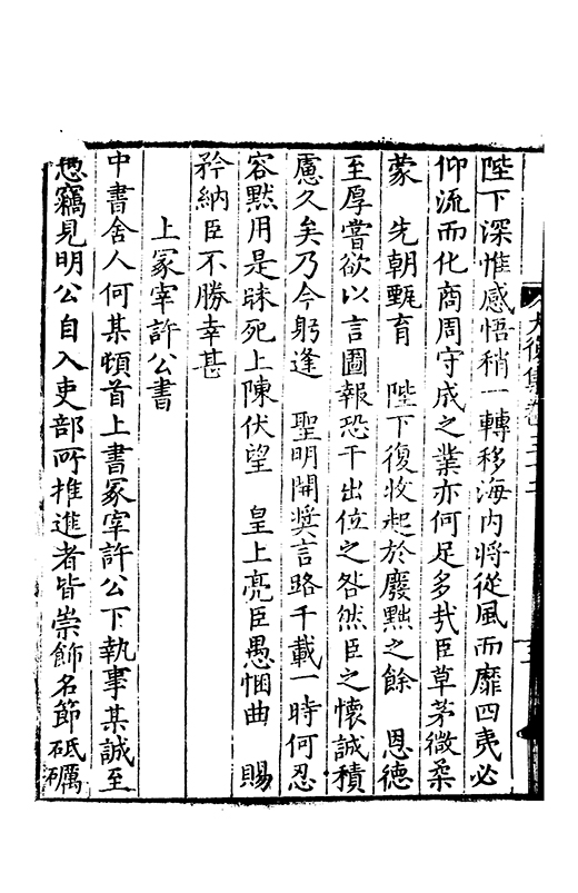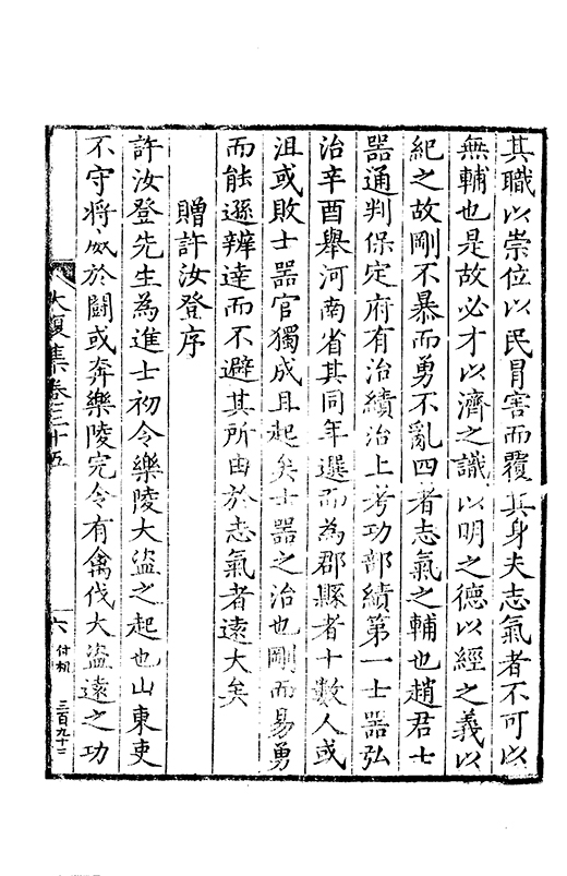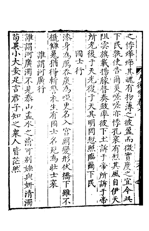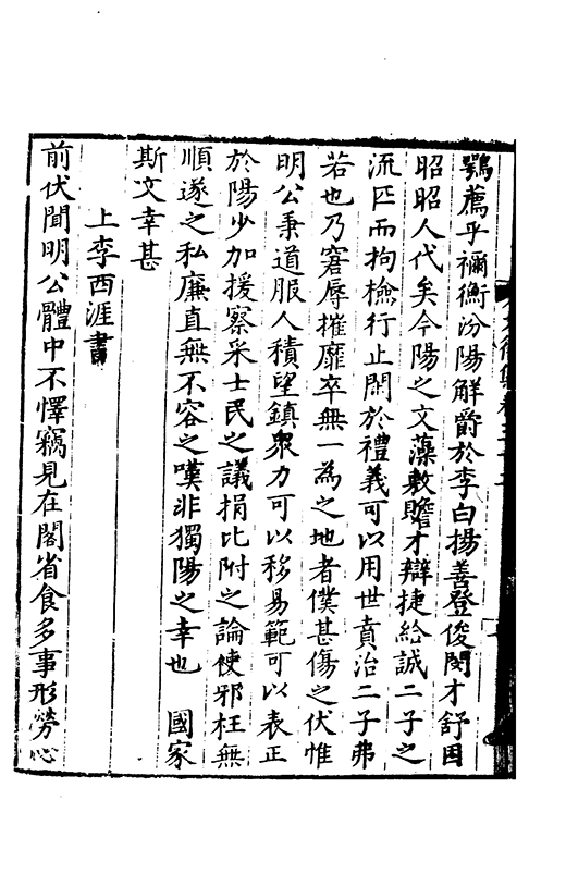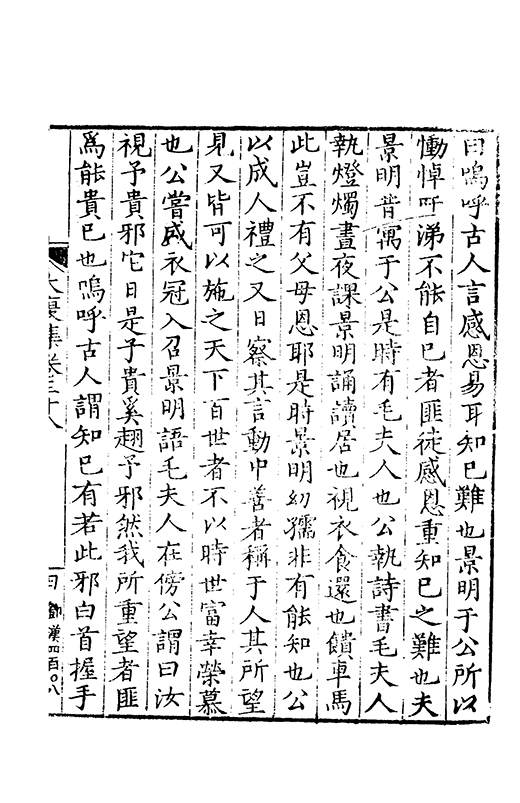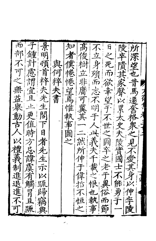 詔極言畨僧義子錢寜數事披鱗蹈鑊朝士奪色即如逆瑾撓吏部權則移書讓吏部會有兵事而執政乞休則又移書讓執政李獻吉與御史姜某訐奏也則又移書太宰直獻吉矣其感憤時事而扶義俶儻盖素所蓄也夫其平居敢諫若此而臨事顧不能仗節如許公為乎何俗士見之晩也頃余會大梁縉紳長老又云先生自幼冲時謙抑温退未嘗以才凌人及論國家當否則蹈厲憤發有萬人獨徃之氣由少