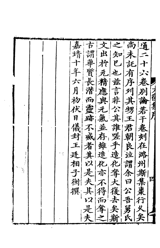 通二十六卷别論若干卷刻在潞州斯集棗行乆矣尚未託有序列其甥王君朝良泣謂余曰公吾舅氏之知巳也兹言非公其誰嗟乎造化奪大復去矣斯文出扵元精應與元氣並存雖造化亦不得而奪之古謂華質長潜而靈跡不滅者其以是夫其以是夫