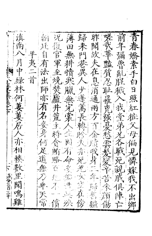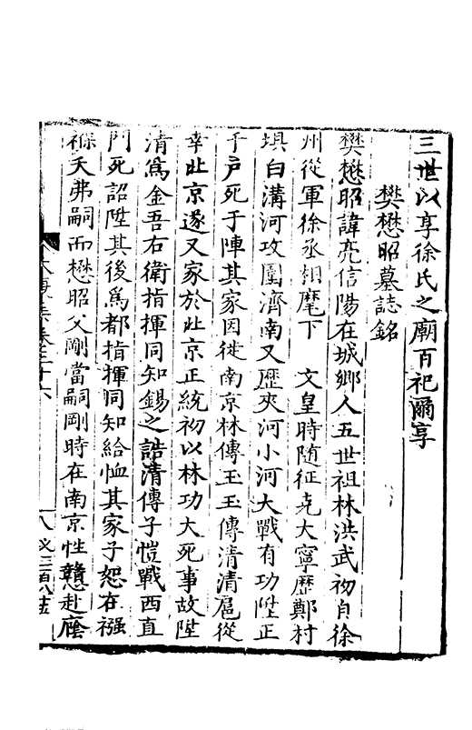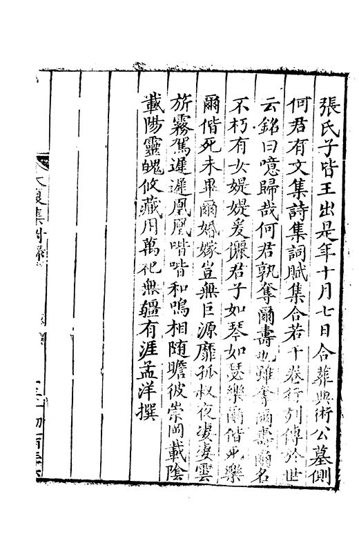張氏子皆王出是年十月七日合葬典術公墓側何君有文集詩集詞賦集合若干卷行刻傳扵世云銘曰噫歸哉何君孰奪爾壽也雖奪爾壽爾名不朽有女媞媞爰儷君子如琴如瑟樂爾偕死樂爾偕死未畢爾婚嫁豈無巨源靡孤叔夜凄凄雲旂霧駕遲遲凰凰喈喈和鳴相随瞻彼崇岡載隂載陽靈魄攸藏用萬祀無彊有涯孟洋撰