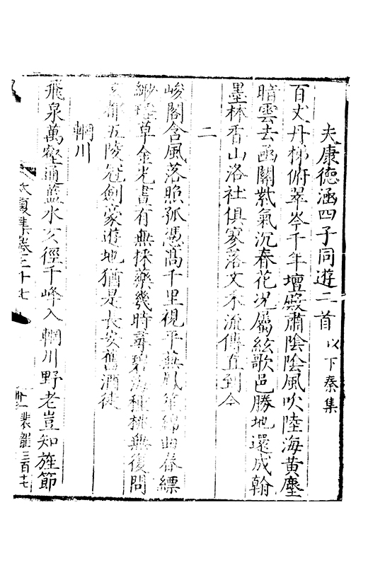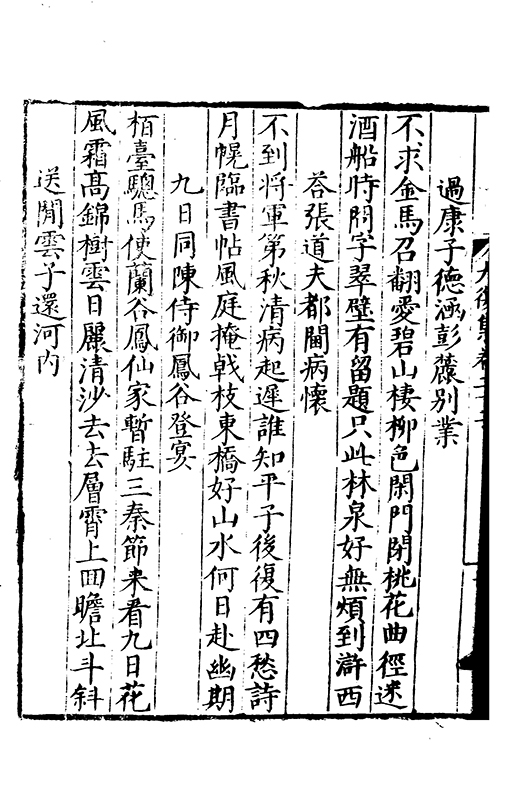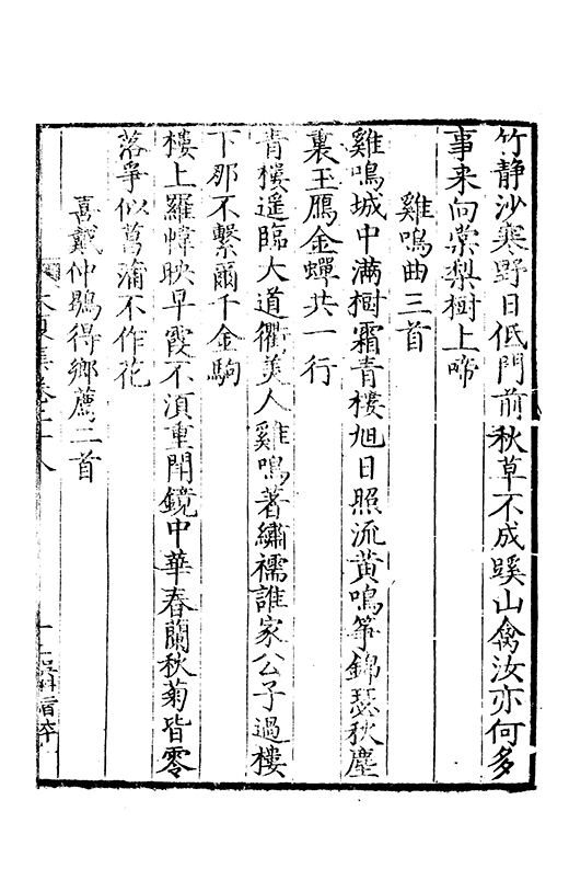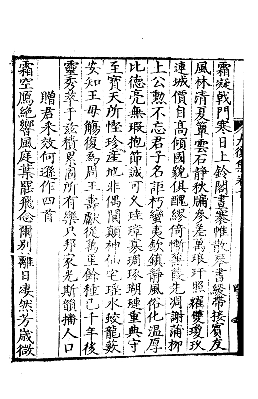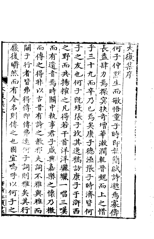 何子仲黙生而敏悟童子時即執簡賦詩邈焉寡儔長益肆力焉探冥抉竒增華潄潤軋晉魏而上之惜乎三十九而卒乃已焉矣康子德涵張子時濟皆何子之友也何子既歿張子收其逸稿訪康子于滸西之野而共揚搉之凡得若干首洋洋纚纚一唱三嘆而有遺音焉時關中執事君子咸興嘉樂之懷乃檄而傳之得非以古昔有詩之教邪夫詞不雅與雅而闕于行者皆弗得傳即傳弗逺何子詞則雅矣其行履復皭然而有令名則傳之也固宜嗚呼以何子之